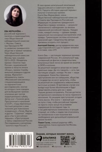 Behind each page are human destinies not only of prisoners, but also of victims of their crimes and law enforcement officers. The author also writes about women's colonies, about the "red zones" where special services officers serve their time, about the famous jailers of famous pre-trial detention centers, about flagrant cases of abuse of power, about bullying and torture, about the selfless work of human rights activists trying to improve the conditions of prisoners, about the legendary Andrei Babushkin.