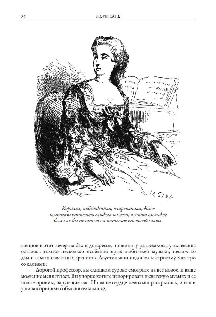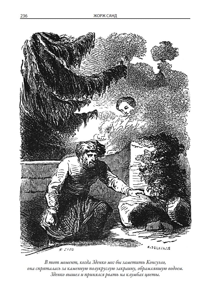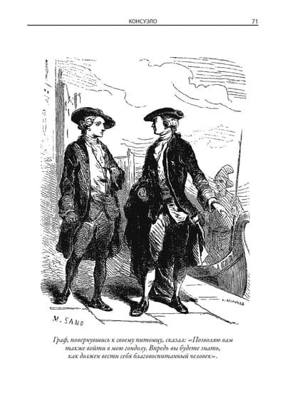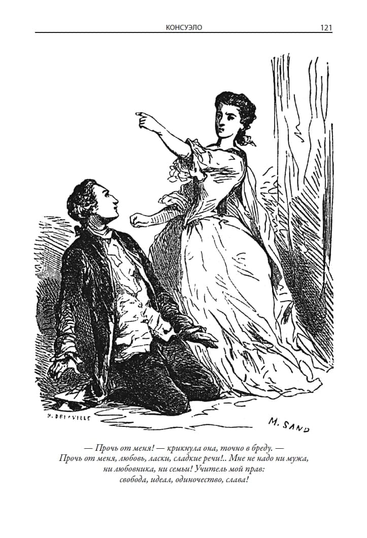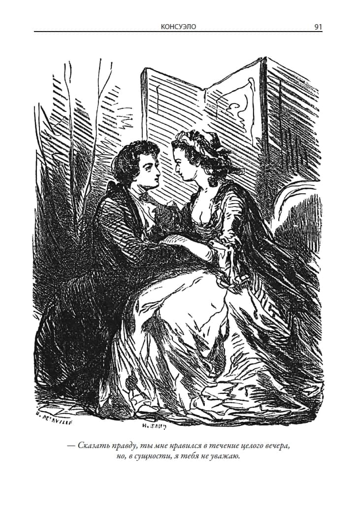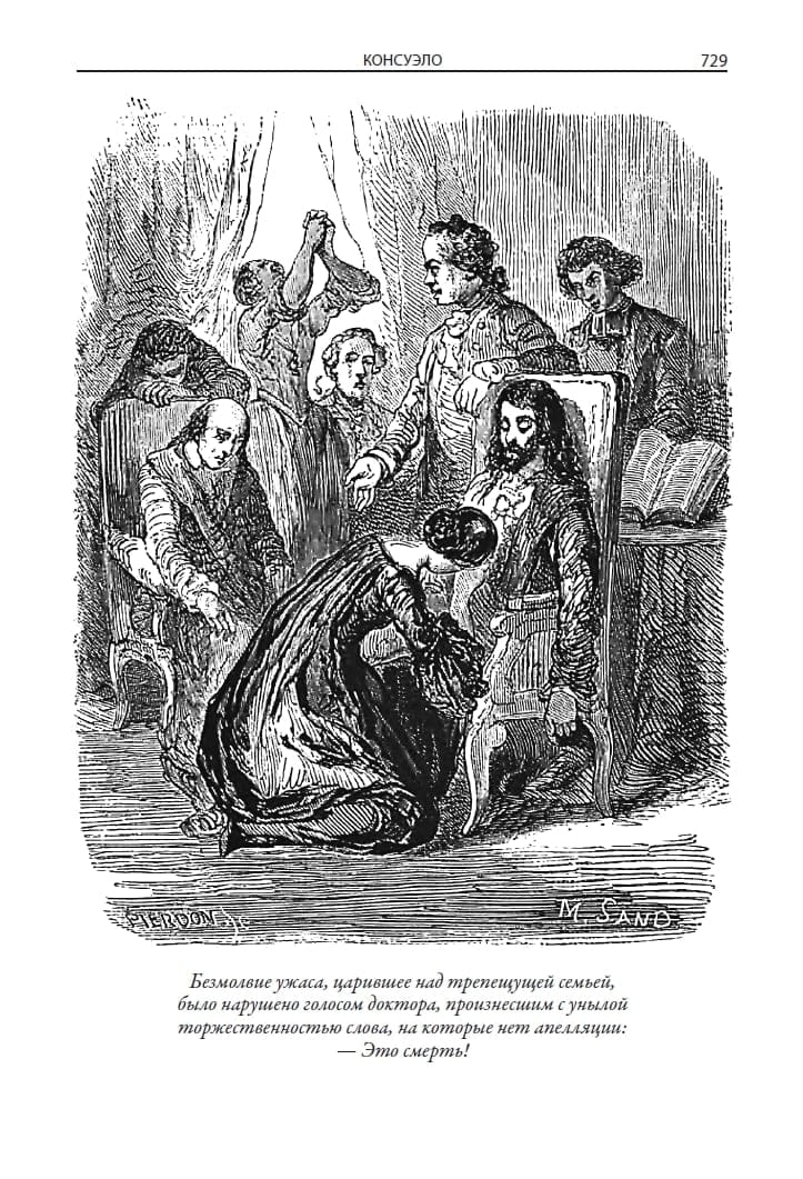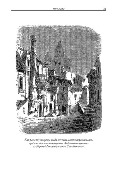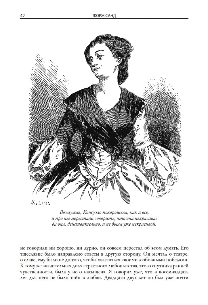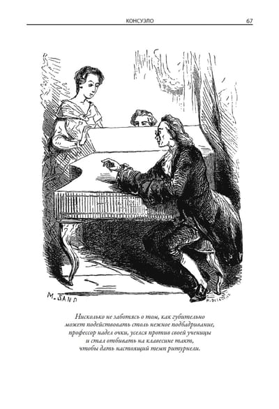 The novel "Consuelo" by the French writer of the 19th century George Sand tells the story of a young singer with an unprecedented musical talent who goes through many trials in her life. The novel, full of mysterious events, has mystical, religious and philosophical motives. Consuelo has to make a difficult choice between fame and love, art and personal happiness. The text of the novel is given in the translation by Alexandra Andreyevna Beketova. The publication is decorated with illustrations by the writer's son Maurice Sand.