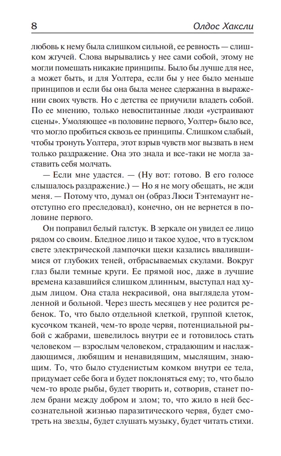 But Aldous Huxley managed to fill this story with depth, to touch upon the most important questions about fate and personal choice, about the conflict between feeling and duty, about honor and love.
