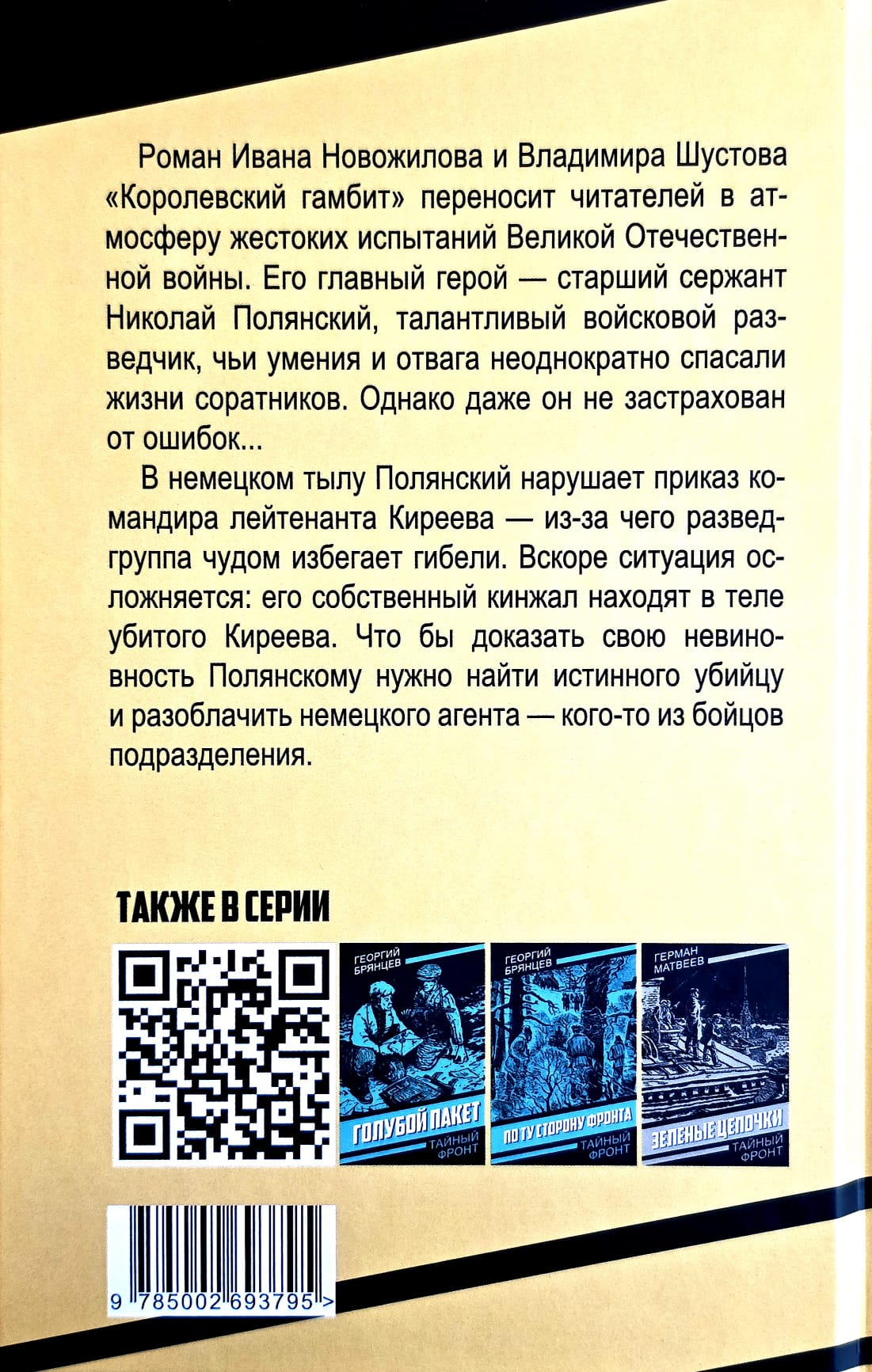 Ivan Novozhilov and Vladimir Shustov's novel "The Queen's Gambit" transports readers to the brutal trials of the Great Patriotic War. Its protagonist is Senior Sergeant Nikolai Polyansky, a talented military reconnaissance officer whose skill and courage repeatedly saved the lives of his comrades. However, even he is not immune to mistakes... Behind German lines, Polyansky disobeys the orders of his commander, Lieutenant Kireyev, resulting in the reconnaissance group narrowly escaping destruction. The situation soon becomes complicated: his own dagger is found in the body of the murdered Kireyev. To prove his innocence, Polyansky must find the true killer and expose the German agent—one of his unit's soldiers.