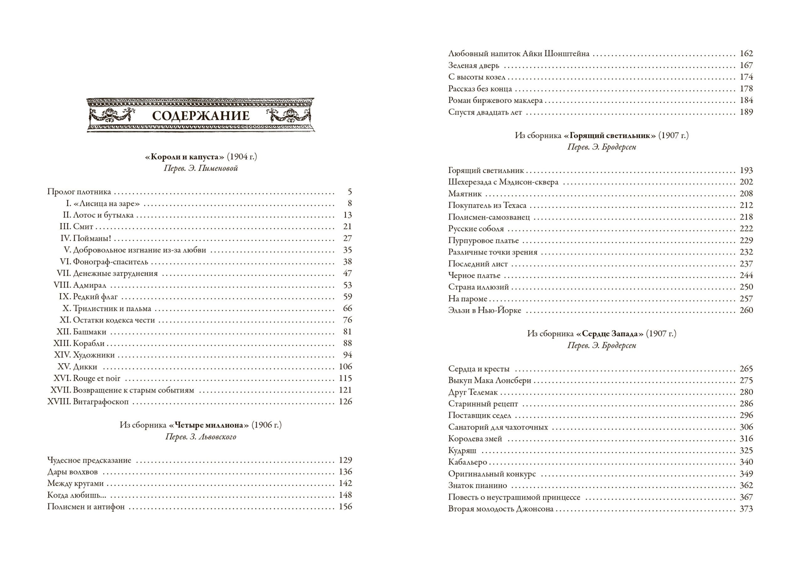 O. Henry (William Sidney Porter) is a world-renowned American writer of the late XIX - early XX century, a master of short stories, which are characterized by subtle humor and unexpected endings. The future classic was born in 1862 in the family of a doctor who practiced in North Carolina. In his youth, William tried many professions - he was an assistant pharmacist, pharmacist, cashier, accountant, draftsman. His talent for storytelling and humour even then delighted enthusiastic listeners. William began to publish his first humorous miniatures in the humorous weekly he created. The publication burned out, but the talent of the aspiring writer was first noticed by reputable publishers. At the time, William lived in Austin and worked at the local branch of the First National Bank. After finding a shortage in the bank, he was accused of embezzlement, and although guilt was not strictly proven, the aspiring writer had to spend three long years in prison. According to one version, his pseudonym O. Henry is an abbreviated name of this correctional institution. The writer himself said that the name Henry he got from the column of secular news in the newspaper, and the initial O. was chosen because it is the simplest letter of the English alphabet. It is also possible that this pseudonym arose thanks to Ocean Henry, a French pharmacist, the directory of which the writer at one time actively used. The most fruitful period of creativity began for O. Henry at the very beginning of the XX century. At that time, the writer lived in New York and collaborated with several magazines, including such famous publications as the Metropolitan, Cosmopolitan, Strend and others. O. Henry became widely known throughout the United States. At that time he was called "American Gogol" and "American Chekhov". His short stories were read by representatives of all segments of the population - from cooks and peddlers to bankers and politicians. Almost always O. Henry drew his stories from the thick of life. The secret of his creative method was that he was just talking to people. Unfortunately, the rise of his popularity was short-lived - O. Henry died at the age of 47 from cirrhosis of the liver. This impressive edition includes one hundred and forty-seven works of the writer from twelve of his collections, including the most famous work - "Kings and cabbage". Numerous comments on stories in the publication help to perceive both all the subtleties of the writer’s style and the realities of American life at the turn of the XIX and XX centuries. The publication is decorated with about five hundred illustrations to the works of the writer from book and magazine publications of the early XX century. The book includes the novel “Kings and Cabbage” and selected novels of the classic of American literature by O. Henry (William Sidney Porter) (1862-1910).