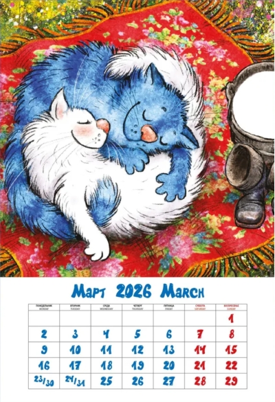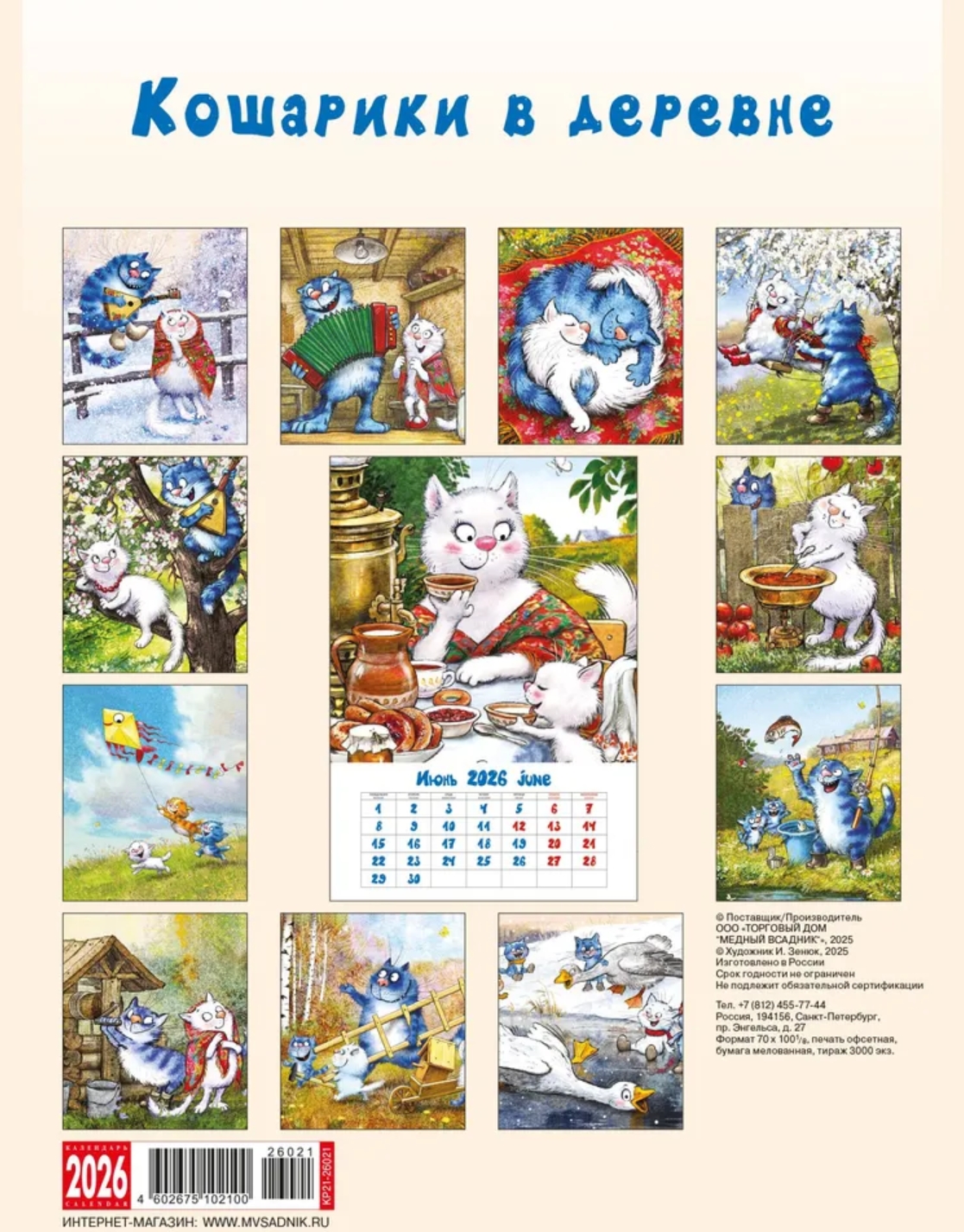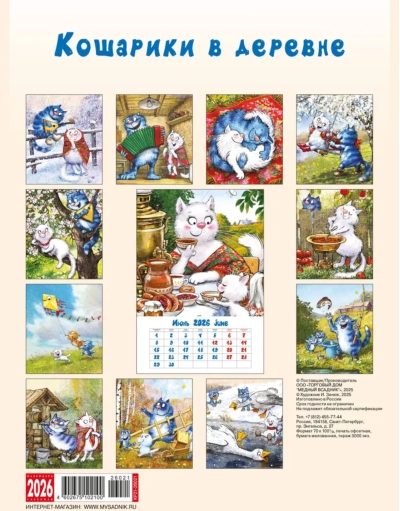 The 2026 wall calendar "Cats in the Country" is full of kind, sparkling humor. Its themes are based on amusing moments in the lives of furry creatures, as observed by the artist's keen eye.