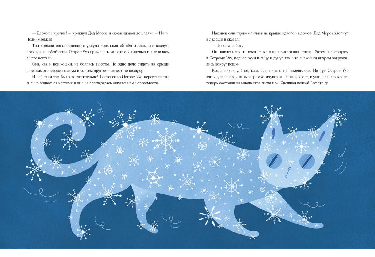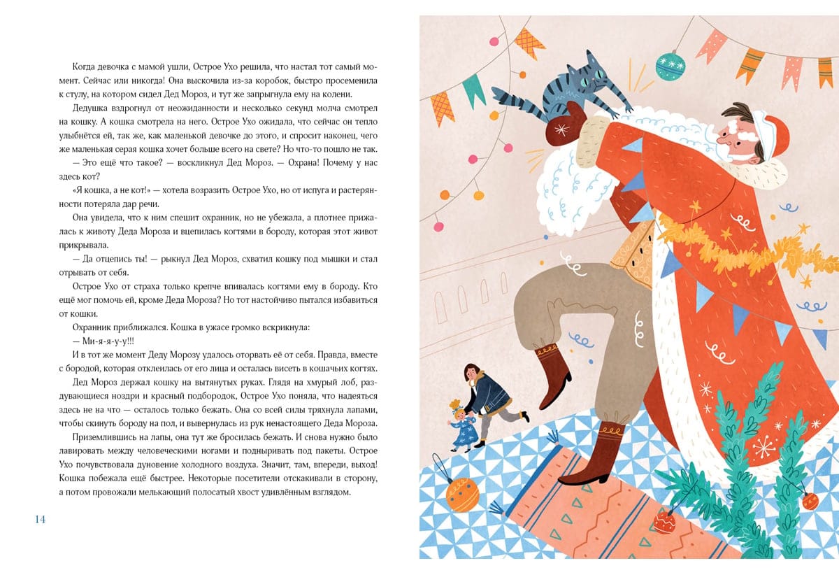 The striped gray cat had neither a home nor an owner, but only the nickname Sharp Ear for its excellent hearing. Two days before the New Year, the cat accidentally overheard a conversation between a boy Vitya and his mother about an unusual magician - Santa Claus. And she really wanted to meet him. Perhaps because she has long had one cherished wish - to find a home, where they will scratch behind the ear and give a real name. But what does this wish-fulfilling wizard look like? And where to find him? Sharp Ear decided that she would definitely go in search of him. However, finding the real Santa Claus turned out to be not so easy....