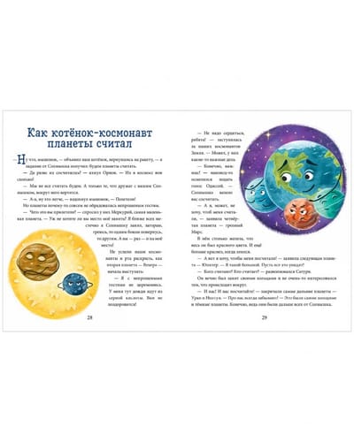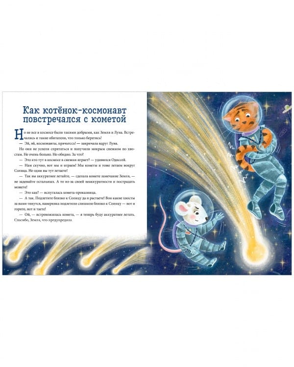In the encyclopedia of fairy tales "Space" a child will have a fascinating journey through the galaxy with the brave kitten Odysseus and his faithful assistant - the mouse Orion. Through fascinating stories, the little reader will receive scientific ideas about space and get acquainted with the profession of an astronaut. With the furry heroes, the child will make the journey from the cosmodrome to the ISS itself. Together they will: learn about the Sun, the Solar System, the Moon, asteroids, comets and meteorites, get acquainted with the structure of a rocket, spacesuit, satellite and space station, learn to identify the most famous constellations.