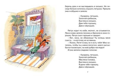 One of the most favorite folk tales from A.N. Afanasyev's collection "Russian Children's Fairy Tales". This collection was published more than a hundred years ago and has been invariably popular ever since. Its author, a famous folklore scholar of the XIX century, retelling fairy tales for children, not only carefully preserved in them the intonation and language of folk storytellers, but also managed to convey the very spirit of the Russian people. The tale of how the fox stole the rooster, and the cat saved him and punished the fox, affirms people's faith in the triumph of truth and justice.