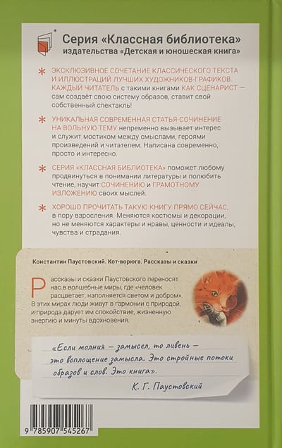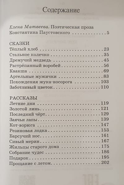 The collection includes stories and fairy tales of the remarkable Russian writer Konstantin Georgievich Paustovsky (1892-1968). They are based on the author's impressions of what he saw and heard on his numerous trips. All of them are united by one important idea that nature teaches a person harmony, inner calmness, friendliness, the ability to "talk to nature", and most importantly - to see it as a source of inspiration, creativity, life energy. Reading stories and fairy tales by K. G. Paustovsky, the reader is transported to magical lands where "man blossoms, is filled with light and good. The main thing is to find one's place on Earth, one's home, one's tree, one's people close in spirit..."