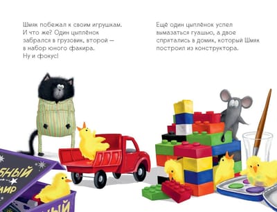 Shmyak had a great honor - he was trusted to take the eggs from the living corner for the night. Tiny chicks were about to hatch from them! Of course, Shmyak would keep a close eye on them. But the chicks hatched at night, when the kitten was sleeping, and ran all over the house. Where to look for them now?