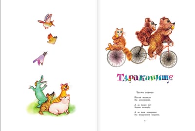 Gennady Vladimirovich Kalinovsky (1929-2006) was an illustrator, winner of many international awards. Having graduated in 1955. After graduating from the Surikov Art Institute in 1955, G. Kalinovsky initially drew for newspapers and magazines, and later came to children's illustration, which brought him world fame. In the fairy tales of K. Chukovsky - these are bright colors, characters in motion, funny, simple-minded, and sometimes scary animals. A formidable bear with eyes red with anger, opening the mouth of Crocodile in "The Stolen Sun", looking like a beautiful girl Mukha-Tsokotukha, cheerful and small Barmaley, climbing out of the mouth of Crocodile. Illustrations by G. Kalinovsky's illustrations to K. Chukovsky's fairy tales are the very ones that a child's eyes will stop on and will definitely be interested in. For children up to 3 years old.