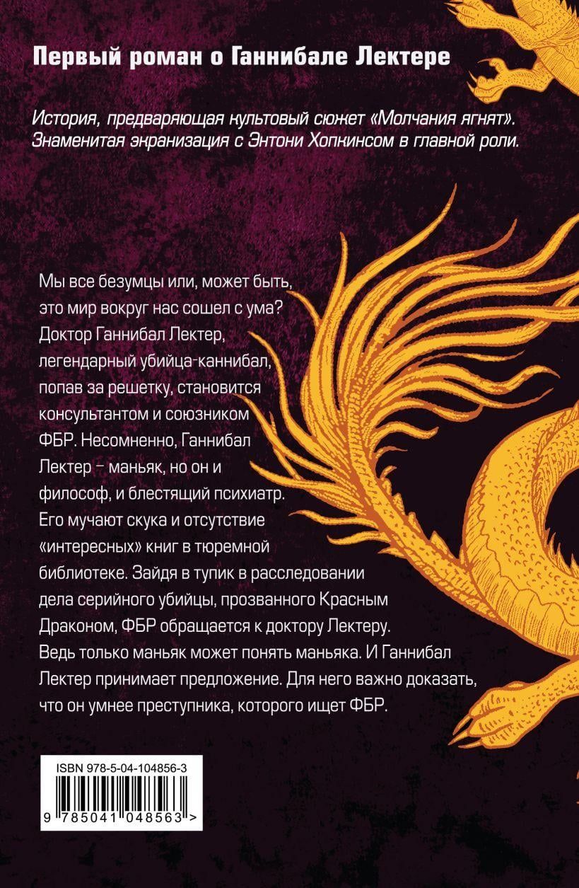 Dr. Hannibal Lecter, the legendary cannibal killer, after being put behind bars, becomes a consultant and ally of the FBI. Hannibal Lecter is undoubtedly a maniac, but he is also a philosopher and a brilliant psychiatrist. He is tormented by boredom and the lack of "interesting" books in the prison library. Having reached a dead end in the investigation of the serial killer nicknamed the Red Dragon, the FBI turns to Dr. Lecter. After all, only a maniac can understand a maniac. And Hannibal Lecter accepts the offer. It is important for him to prove that he is smarter than the criminal the FBI is looking for.