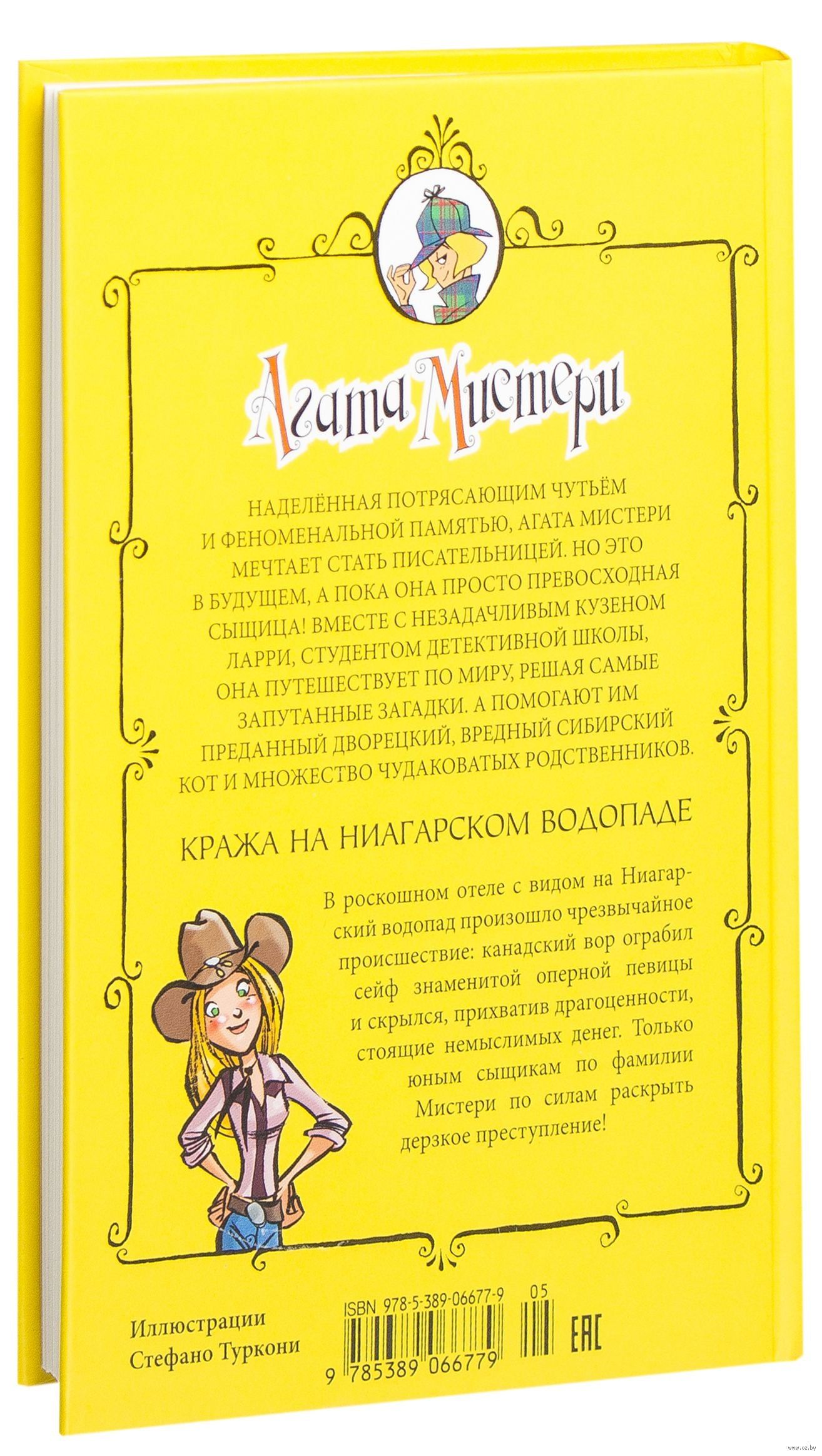 Blessed with an amazing instinct and a phenomenal memory, Agatha Mystery dreams of becoming a writer. But that's in the future, but for now she's just a superb detective! Together with her hapless brother Larry, a student of detective school, she travels the world to solve the most intricate mysteries. They are aided by a devoted butler, a noxious Siberian cat, and a host of oddball relatives. Theft at Niagara Falls. In a luxurious hotel overlooking Niagara Falls there was an extraordinary incident: a Canadian thief robbed the safe of a famous singer and fled, taking jewelry worth inconceivable money. Only the young Mystery detectives can solve the daring crime!