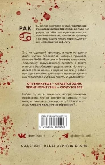 During his first shift, Bobby receives a letter: twelve frighteningly detailed horoscopes, all predicting death. And an ultimatum: publish them, and one will come true. Ignore them, and they will all come true.