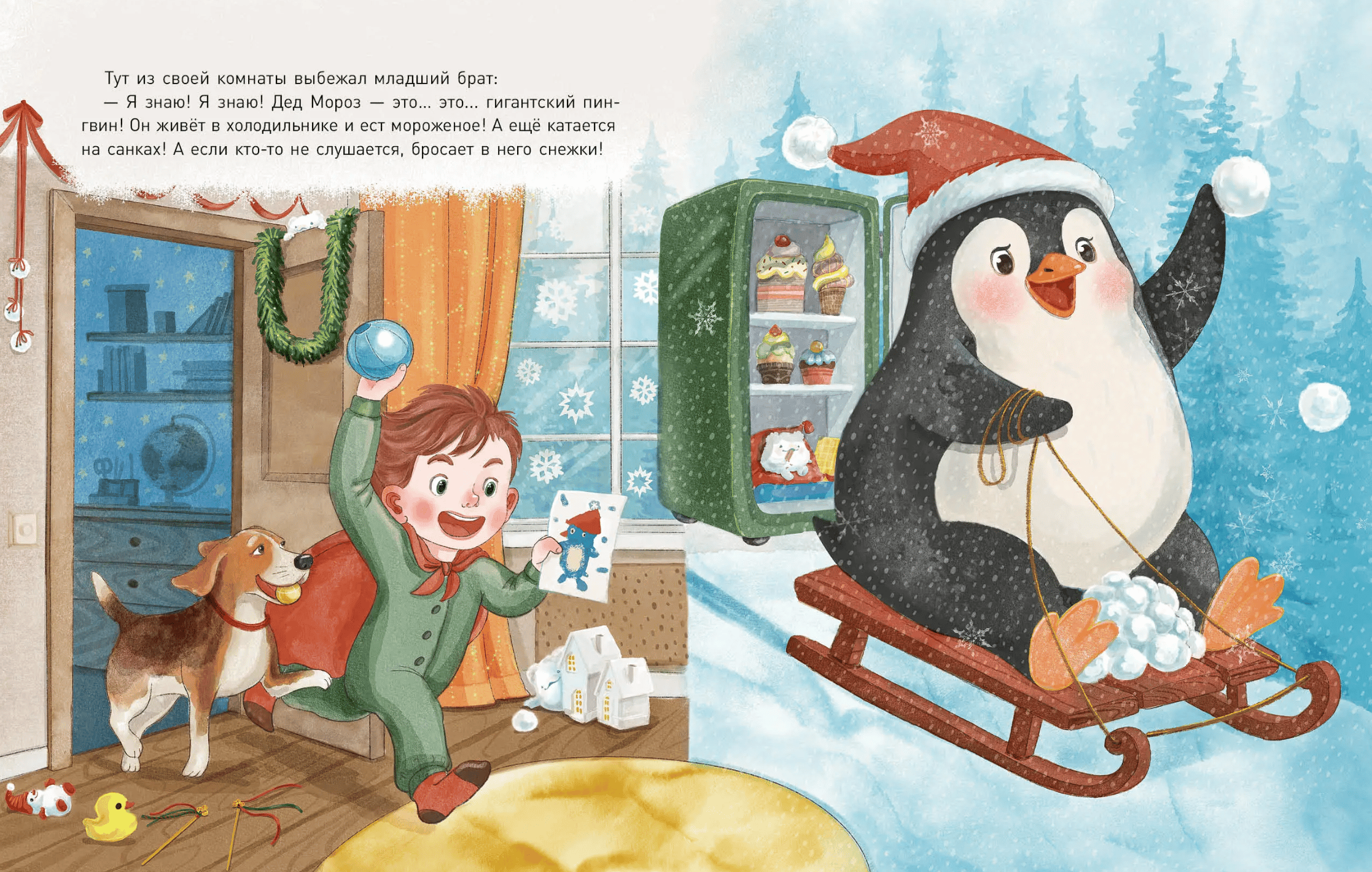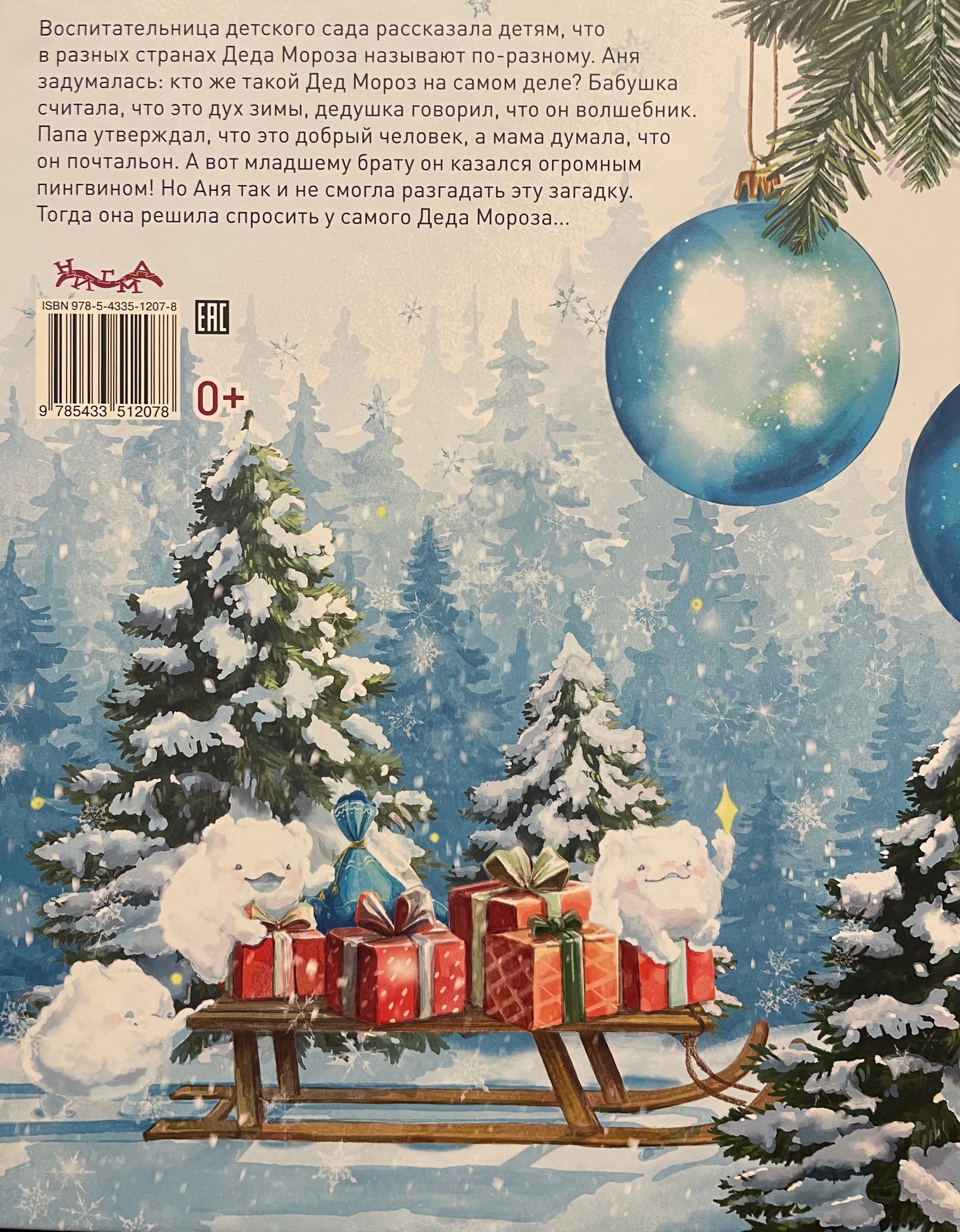 The kindergarten teacher told the children that Father Frost is called by different names in different countries. Anya wondered: who exactly is Father Frost? Grandma thought he was the spirit of winter, Grandpa said he was a wizard. Dad claimed he was a kind man, and Mom thought he was a postman. But to her little brother, he seemed like a giant penguin! But Anya couldn't solve this riddle. So she decided to ask Father Frost himself...
