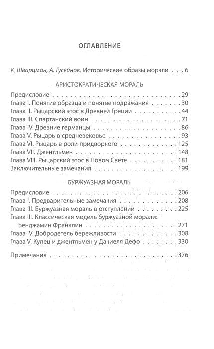 This book consists of two of the most important theoretically important works of the greatest Polish moral researcher. The work "Chivalric Ethos and its Varieties" deals with the varieties and evolution of chivalric ethos from antiquity to modern history. In "Bourgeois Morality" the formation and development of norms and values of bourgeois morality and inherent personal patterns of behavior are thoroughly analyzed. In the course of consideration of historical types of morality, the author widely draws on the material of fiction, journalism, memoirs, ethnographic and sociological studies, which makes it possible to recommend the book not only to specialists in the history of ethics, but also to a wide range of readers