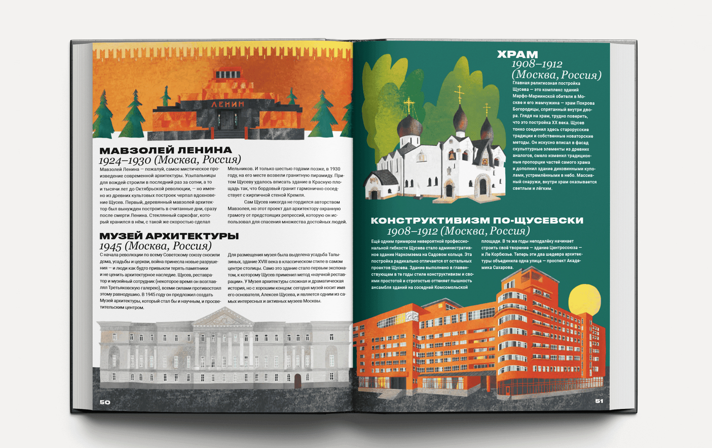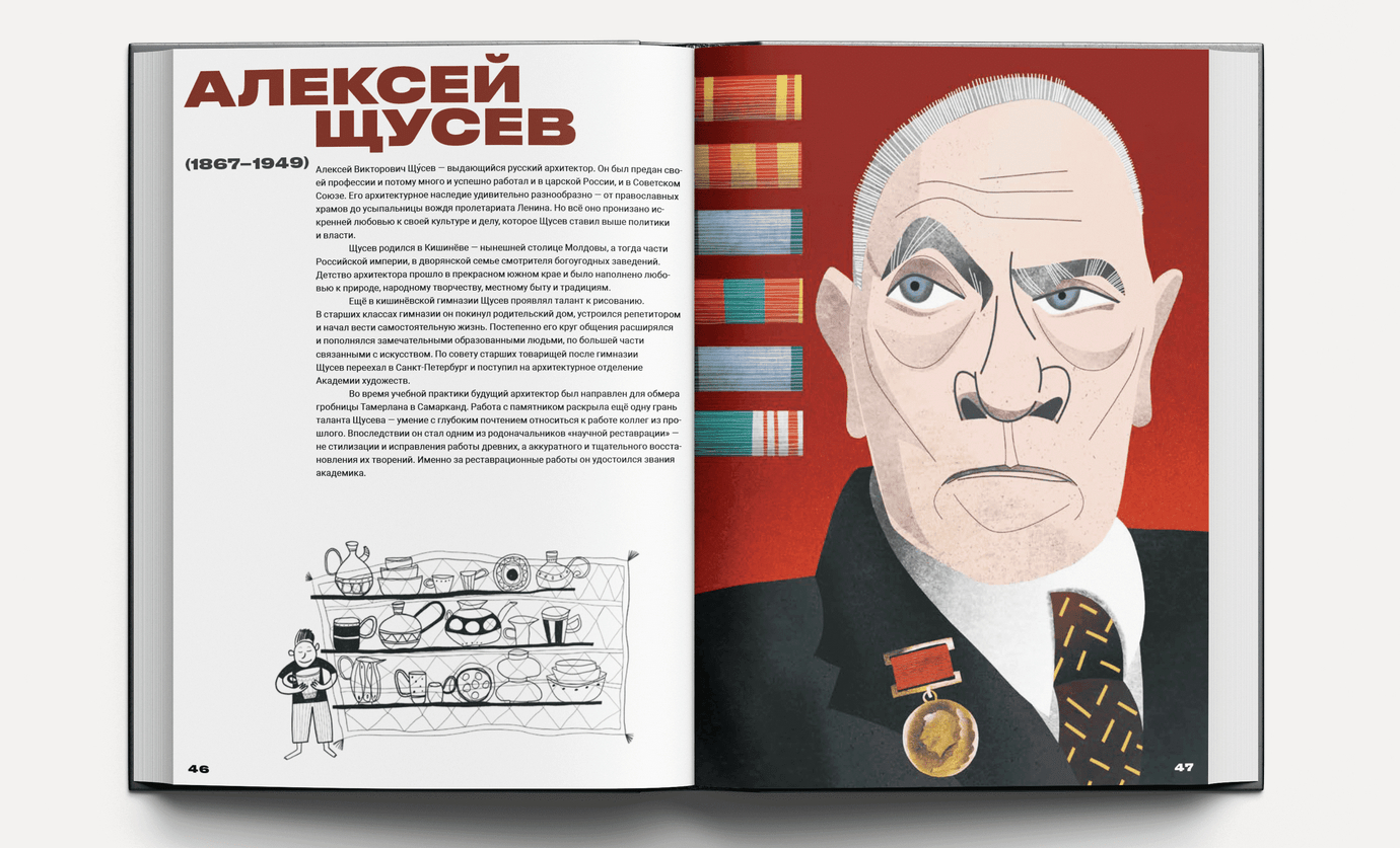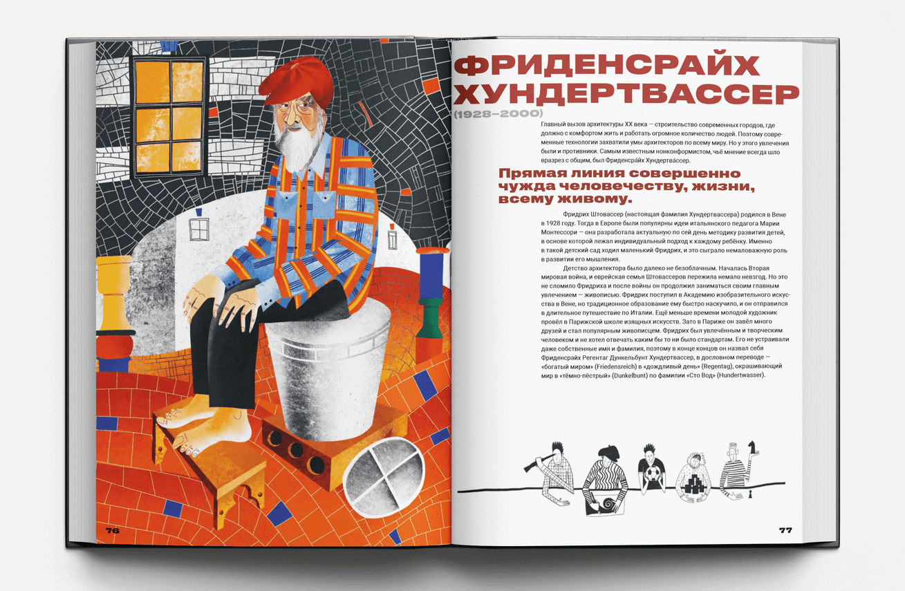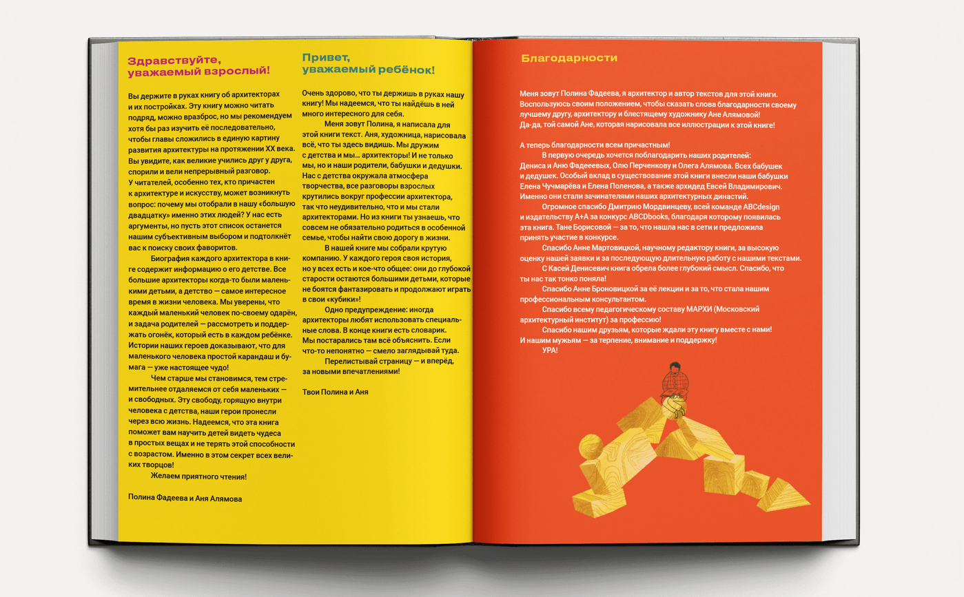 When you look at the houses and streets, hotels and museums, stores and malls, have you ever wondered who built them all? Somebody invented and built whole cities, ports, bridges, parks. And even monuments were designed so they wouldn't fall down. This book is about people who built everything that nature itself did not create - architects. They do not always build themselves, they develop projects and plans, think about the use and development of territories. This is a complex and very responsible work, and the result of it is in plain sight. However, we rarely see the architects themselves, sometimes we know them by name and almost never by face. But these masters and creators are living people, jokers and dreamers. Anna Alyamova and Polina Fadeeva, hereditary architects and friends since childhood, decided to tell children and adults not only about buildings, plans, constructions and concepts, but also about their creators, who were little, invented intricate things, loved constructors, helped their parents, and when they grew up, did not become boring adults, but continued to play with reality and create new and amazing things. Even if it all seemed a strange childishness to the people around them, in time the heroes of the book changed the world we live in.