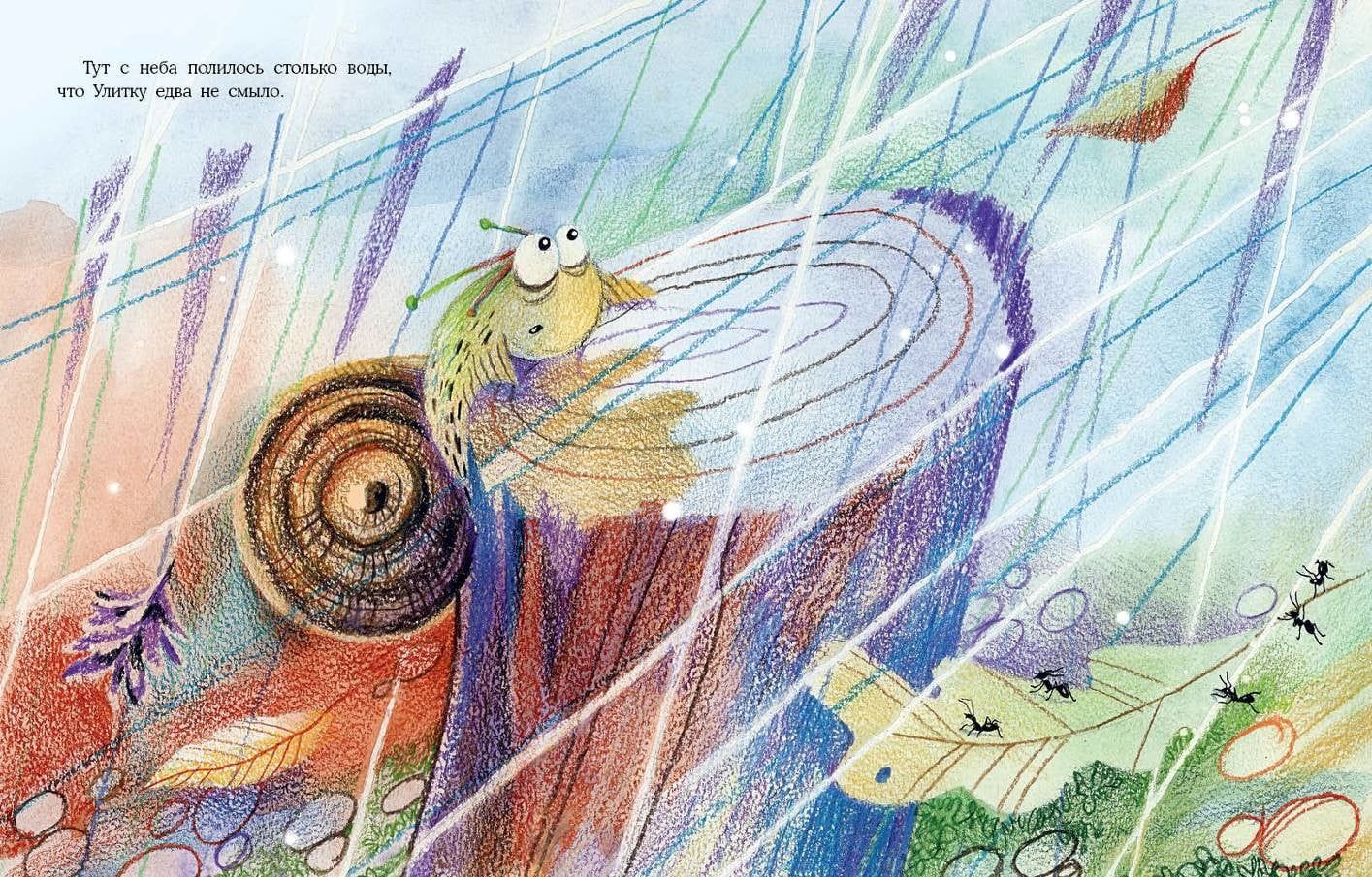 Little Snail lives in the forest. Every day she discovers something new and wonderful - the sunrise and sunset, the unusual smells of herbs and flowers. But suddenly the rain catches Snail by surprise - she can't hide at home because she doesn't know where her home is! All her friends have holes, nests, bushes and stumps: Hedgehog, Bunny, Beaver and even Ant. And only Snail has nowhere to go back to? And maybe Snail will find her home and it will be much closer than it seems?