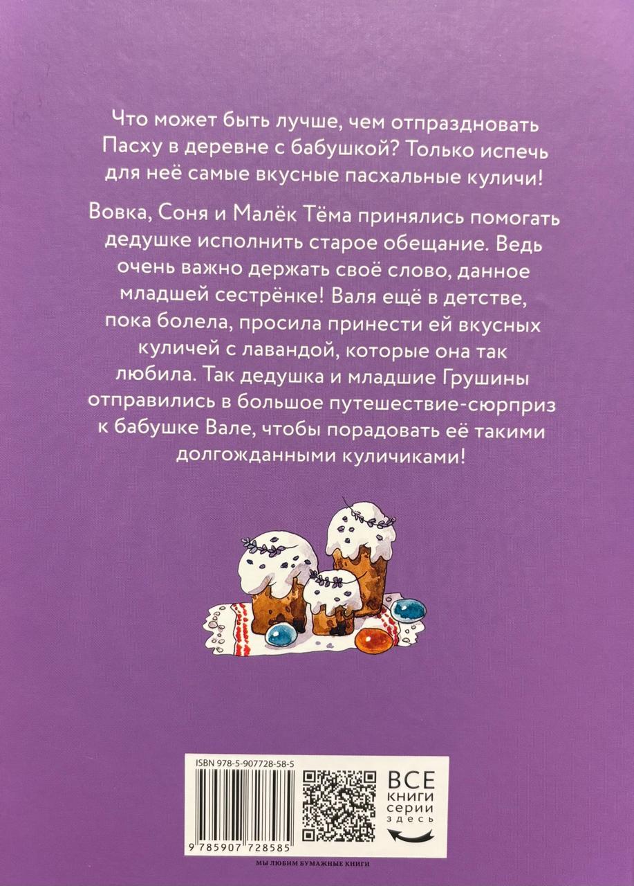 This time, on the eve of Easter, Vovka, Sonya, and Malok, along with their grandfather, set off for the village. A big surprise trip to Grandma Valya awaits them. What prompted this trip and what lavender Easter cakes have to do with it—you'll find out in the book!