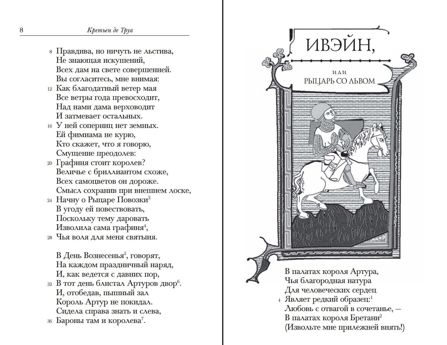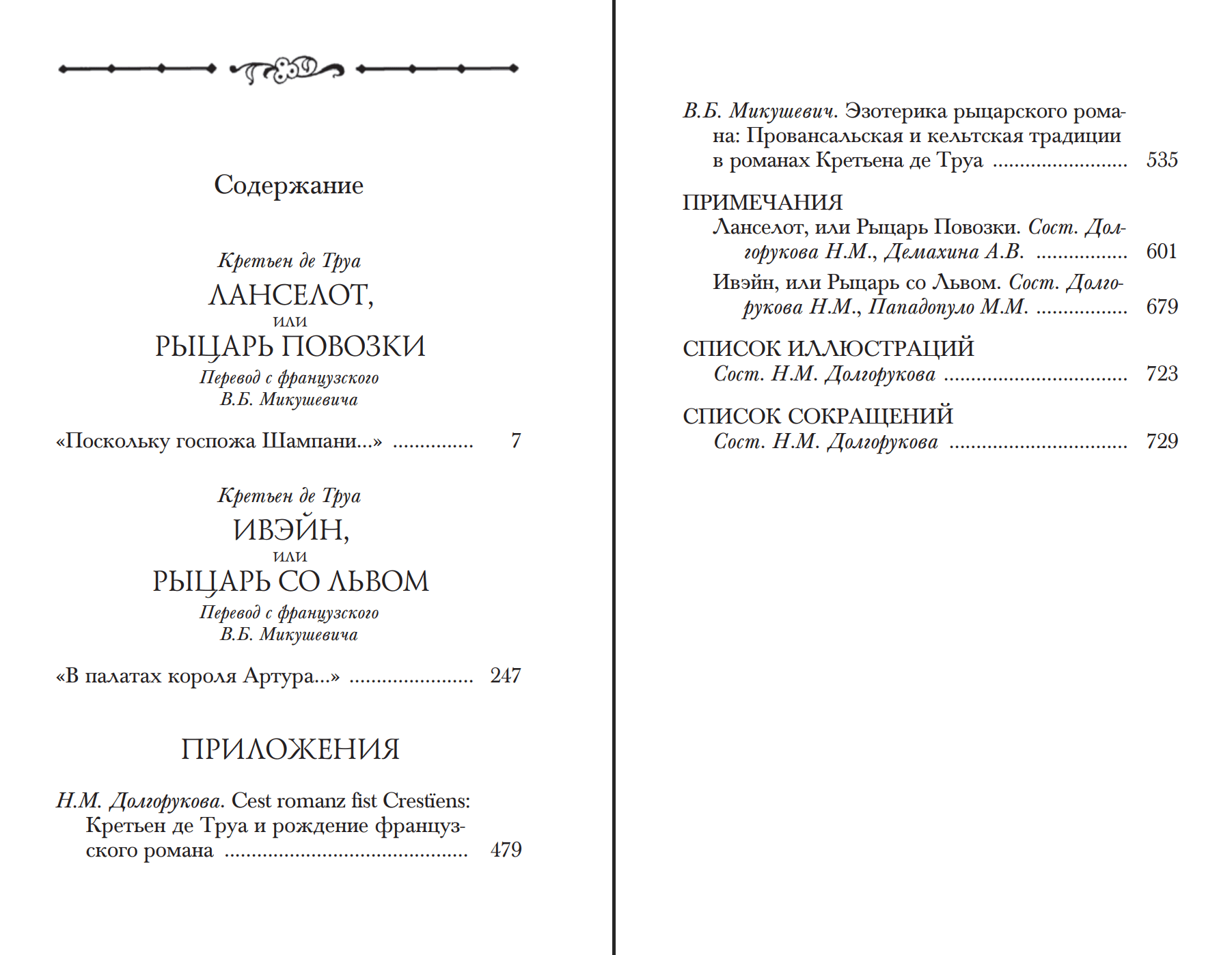 This edition continues the publication of his novels: it includes "Lancelot" and "Yvain" in their complete translation by V.B. Mikushevich, newly revised for this edition. The book is supplemented by articles by researchers exploring the connection between Chrétien's work and the literary and spiritual traditions of the era, as well as commentary and rare illustrations that enhance the understanding of the texts.