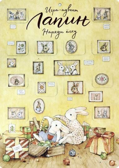 How to turn waiting for the New Year into an exciting game? Open a beautiful Advent calendar and decorate the Christmas tree together with the white rabbit Lapin. Many young readers are already familiar with the fluffy hero from Julia Simbirskaya's book. He lives with his mom and dad in the Clover Valley and is ready to tell about his new adventures. And now he is going to decorate the Christmas tree and wait for the winter holiday. Start playing two weeks before the New Year. Each day open one "window" that are hidden under photos, gifts and pictures in the living room of the Lapin family. In each of these hiding places lies a Christmas toy and a task that needs to be completed. For example, learn a poem, write a letter to Santa Claus or draw the most pleasant event of the passing year. All toys are double-sided - you can "hang" them both one and the other side. If you do not miss a day, by New Year's Eve you will have a dressed up Christmas tree. Place it on the wall and admire it all winter long. Both the tree and the toys are made of dense cardboard and varnished for long-lasting use.