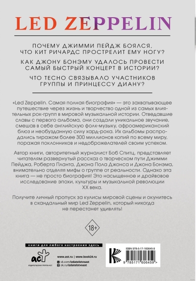 How did John Bonham manage to hold the fastest concert in history? What was the close bond between the band members and Princess Diana? "Led Zeppelin. The Most Complete Biography" is a fascinating journey through the life and work of one of the most influential rock bands in world music history. Rising to fame from their first album, they created a unique sound, blending English folk music, African-American blues and the raw power of hard rock. Their albums have sold more than 300 million copies worldwide, astounding fans and detractors alike with their success. Author Bob Spitz, a respected journalist, provides readers with a detailed account of the creative paths of Jimmy Page, Robert Plant, John Paul Jones and John Bonham, carefully separating the myths of the band from the reality. However, this book is more than just a biography. It is a rich and driving exploration of the era, culture, and musical revolution of the 20th century. Get a personal backstage pass to the world stage and delve into the scandalous world of Led Zeppelin, which will never cease to amaze.