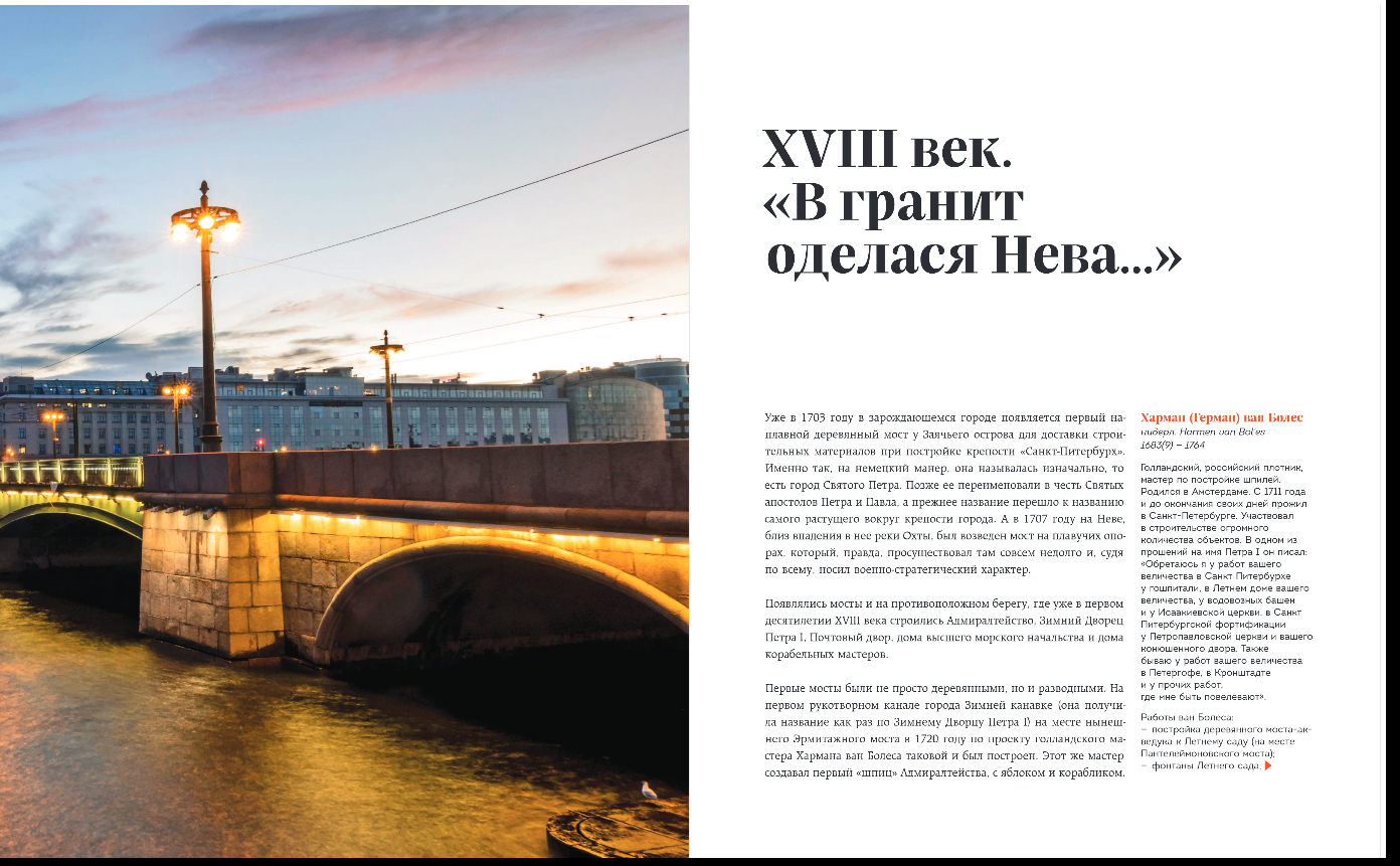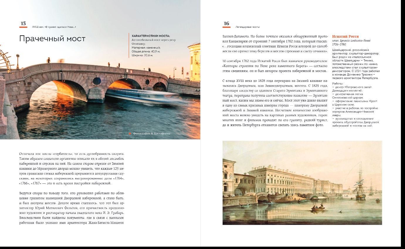 The author of this book, accredited guide of the 1st category Lilia Sergeeva, will tell you about the most famous, remarkable and interesting bridges of the northern capital. Looking through panoramic photos and archive illustrations, you will take a "walk" along the rivers Moika and Fontanka, cross the Lebyazhya Canal, marvel at the beauty of the Griboedov Canal and, of course, look at the bridges on the Big Neva River, coming to the very borders of the Gulf of Finland. Tracing the history of bridges in St. Petersburg - Petrograd - Leningrad, it is as if we are reading a fairy tale about how bridges gradually turned from ordinary wooden crossings into the main decoration of the city. Whatever material they were built of - stone, cast iron, reinforced concrete, steel, aluminum - they became an integral part of St. Petersburg views. Walk along these bridges and embankments - perhaps in their reflections in the water you will see and hear new stories and legends revealed only to you. Look at the bridges from the water from pleasure boats, feel their inextricable connection with the city, its mysteries and secrets. Open this book and immerse yourself in the living history of St. Petersburg.