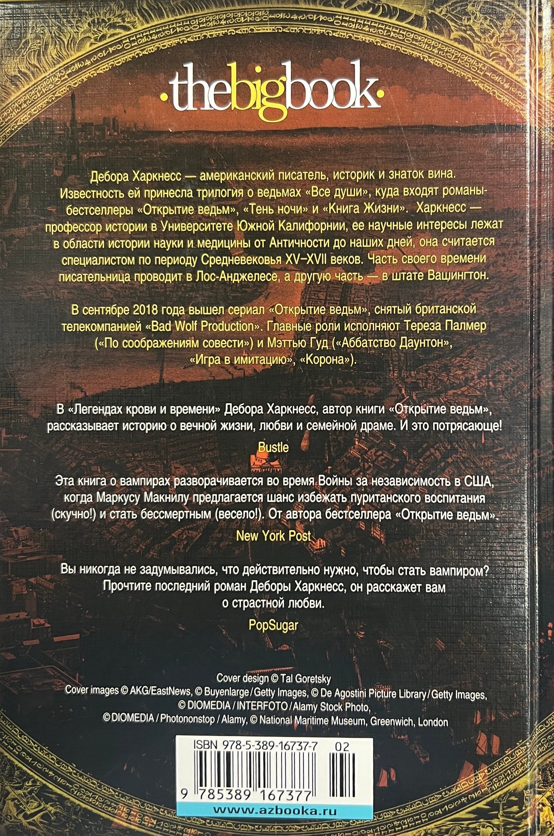18th century. UNITED STATES. The War of Independence is underway. During one of the battles, Matthew de Clermont meets Marcus McNeil, a young army surgeon. A few years later, meeting Marcus again, who is dying of typhoid fever, Matthew offers him a chance to start a new life, free of disease and almost immortal. Marcus seizes this chance and becomes a vampire. But the ancient traditions and numerous duties on which the de Clermont family's way of life is based come into violent conflict with the ideals of freedom, equality and brotherhood in which Marcus deeply believes. XXI century. Paris. Phoebe Taylor, a young employee of the Sotheby's auction house, with whom Marcus has fallen in love, decides to become a vampire and is ready to begin her journey into immortality. Although the modern version of the process of turning a human into a vampire seems uncomplicated at first, Phoebe and Marcus soon discover: the difficulties and dangers that beset humans along the way haven't changed a bit since the eighteenth century. "Legends of Blood and Time" is a story of passionate love bridging the centuries, and a gripping exploration of the power of tradition and the possibility of change right up to the Revolution. It is a tale of a supernatural world order and a leisurely unfolding romance of the events described.