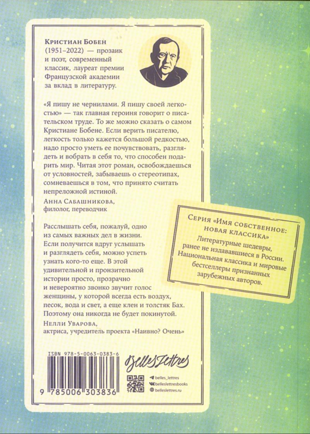 Christian Bobin's book combines a poetic perception of the world and the crystal purity of language inherent in the classics. It can be put on a par with Raymond Queneau's masterpiece "Zazie in the Metro" and Patrick Modiano's "Little Miracle". A cure for sadness and a source of inspiration, this novel is about the state of the soul.