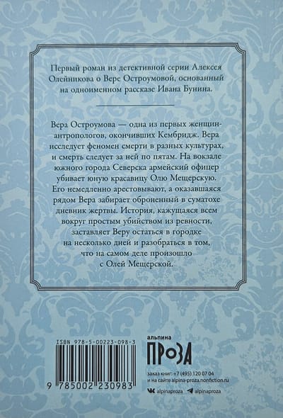 The first novel in Alexey Oleynikov's detective series about Vera Ostroumova, based on the story of the same name by Ivan Bunin.