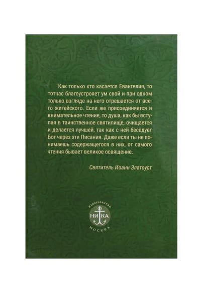 The texts of the New Testament in this book are collected in the order of the liturgical circle and the requirements. It gives an idea of the meaning and history of the New Testament as it is accepted by the Orthodox Church, and contains instructions on how to read the Holy Scriptures for every need and every day. The large font makes it easy to use for the visually impaired.