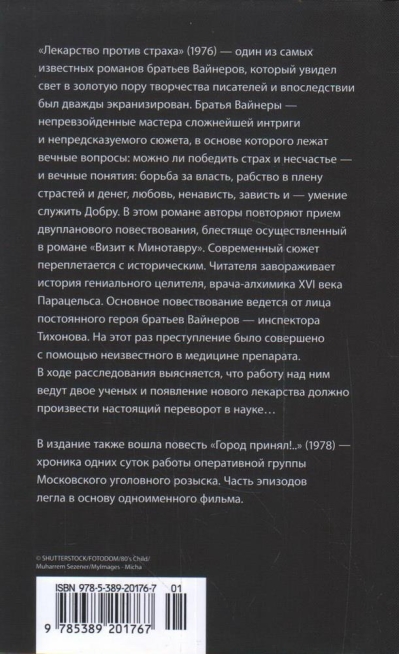 "A Cure for Fear" (1976) is one of the Vayner brothers' most famous novels, published during their golden age and subsequently adapted into two films. The authors' technique of combining timelines, previously tried in "A Visit to the Minotaur," once again created not just a gripping detective story, but a work in which a contemporary plot is intertwined with a historical one—in this case, with the story of the 16th-century physician and alchemist Paracelsus. The main narrative is told from the perspective of the Vayner brothers' regular character, Inspector Tikhonov. This time, the crime was committed with the help of a drug previously unknown to medicine. During the investigation, it is discovered that two scientists are working on it, and the discovery of this new medicine is destined to revolutionize science. The publication also includes the story "The City Accepted!.." (1978), a chronicle of one day of work by a Moscow criminal investigation task force. Some of the episodes served as the basis for the film of the same name.