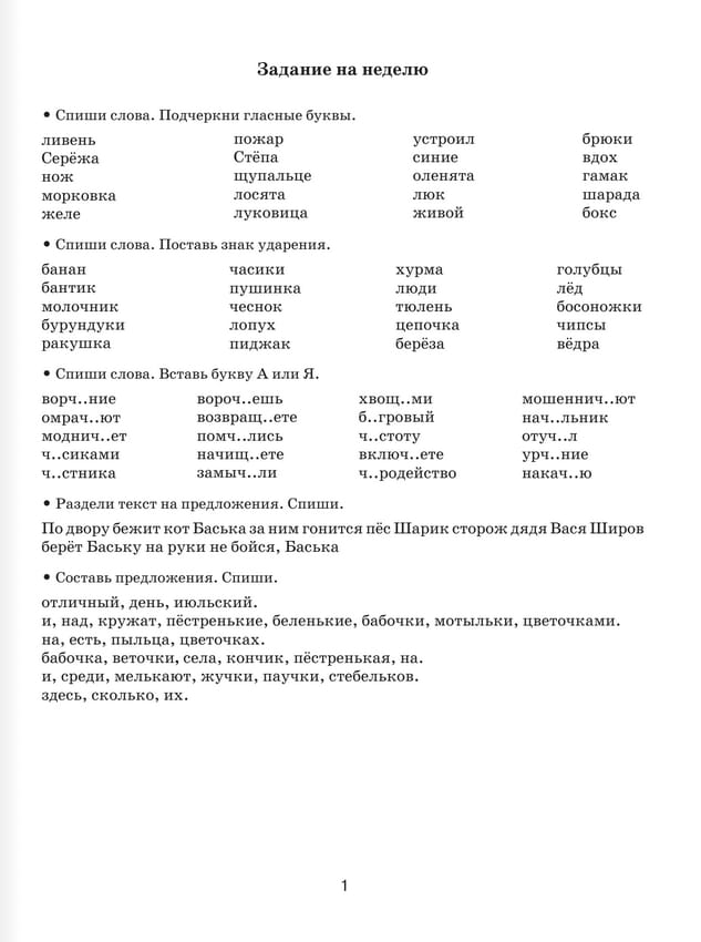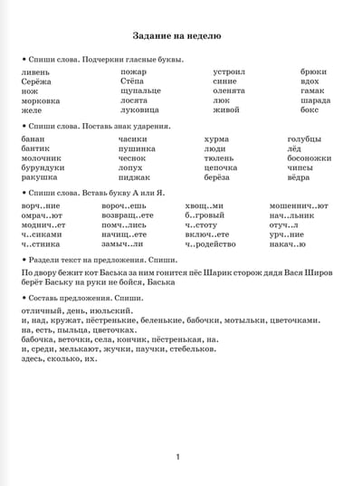 Summer Russian language assignments for review and reinforcement of learning material. Grade 1