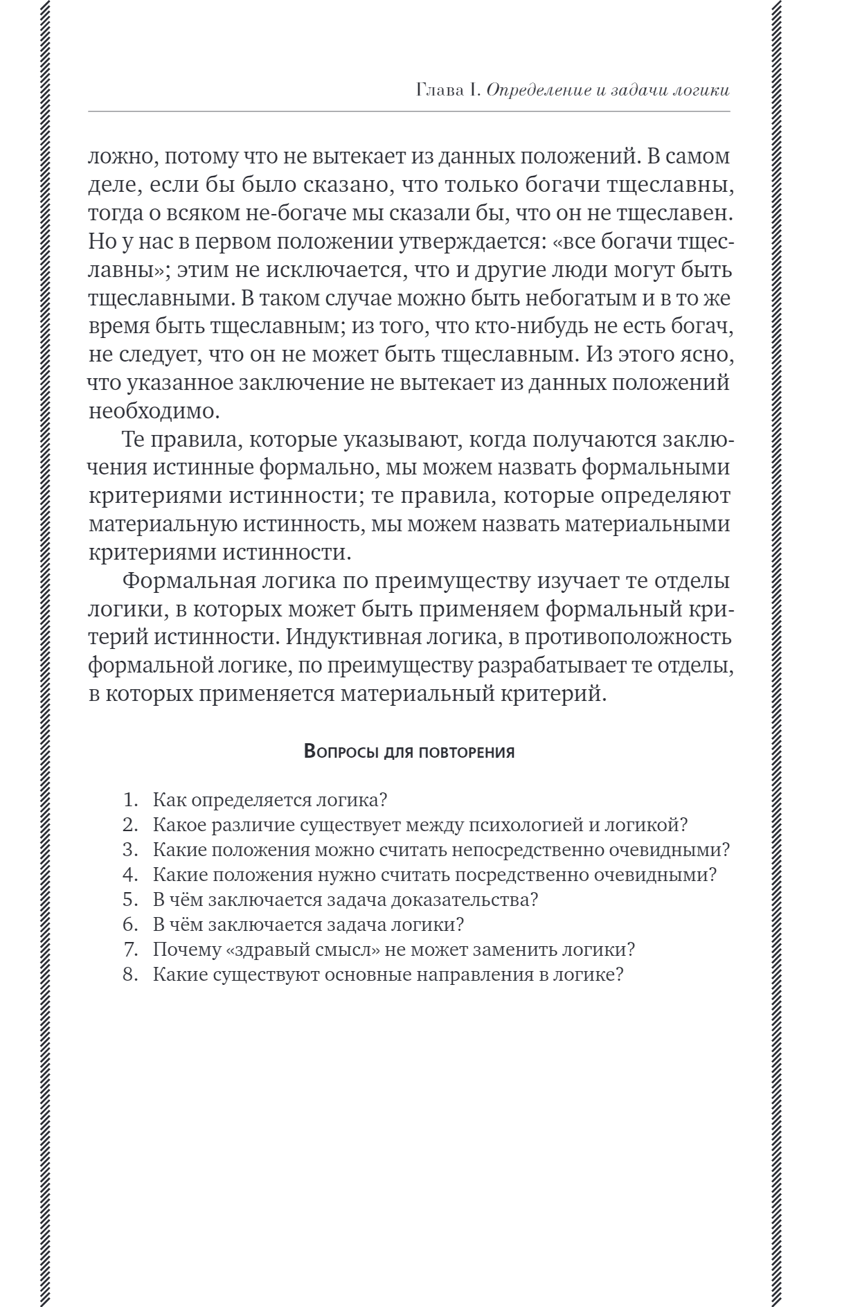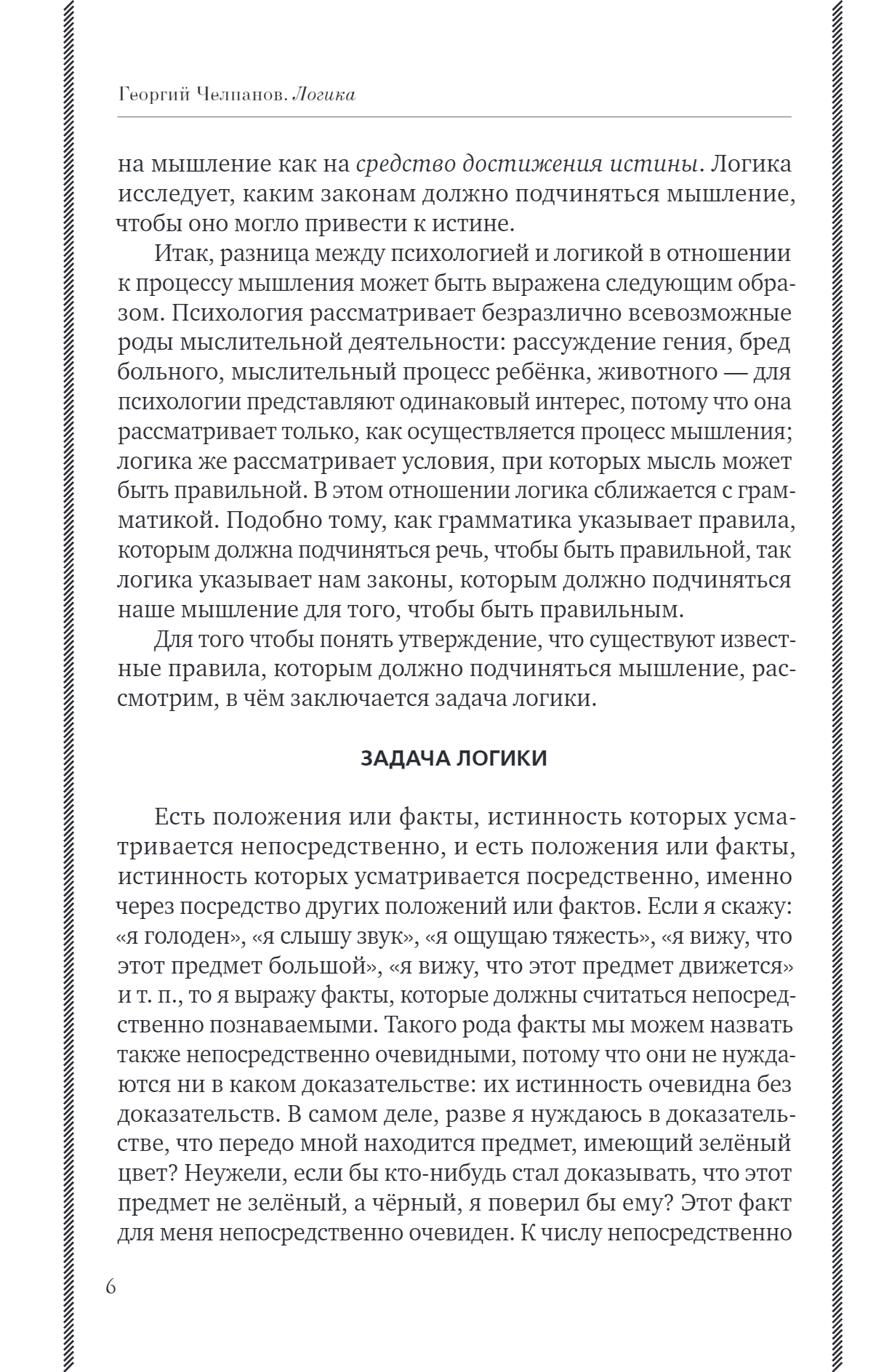 It is logic that helps to establish the truth, maintain clarity of mind and harmony of thought, avoid mistakes and traps of reason. The famous textbook of logic by Georgy Chelpanov has withstood a huge number of publications, is relevant and modern today more than ever.