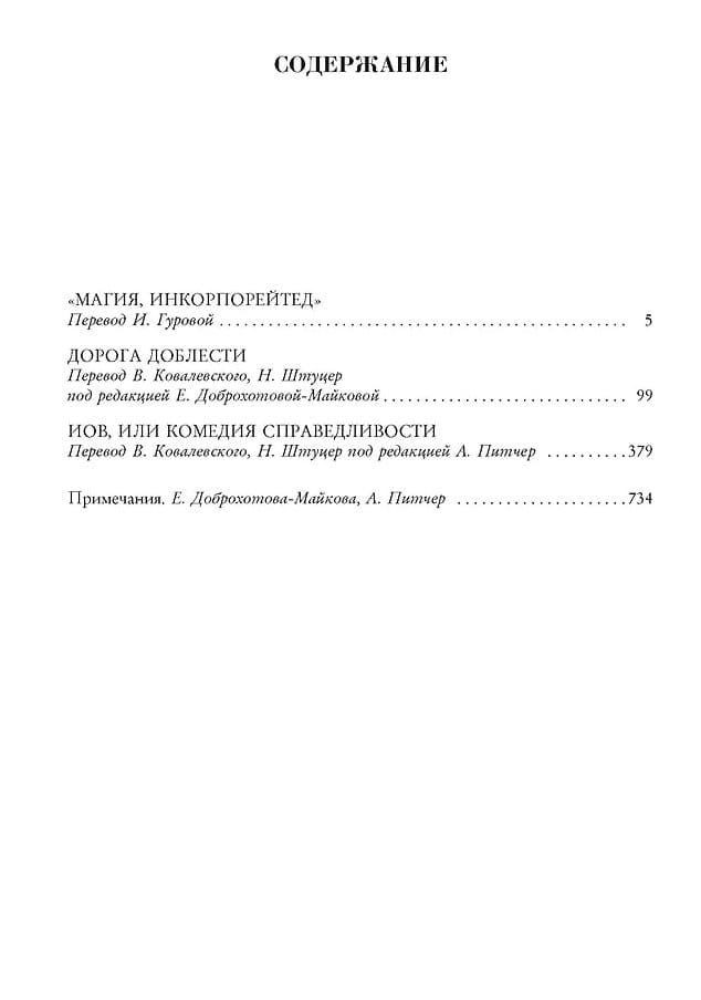 Magic, Incorporated. The Road of Valor. Job, or the Comedy of Justice.