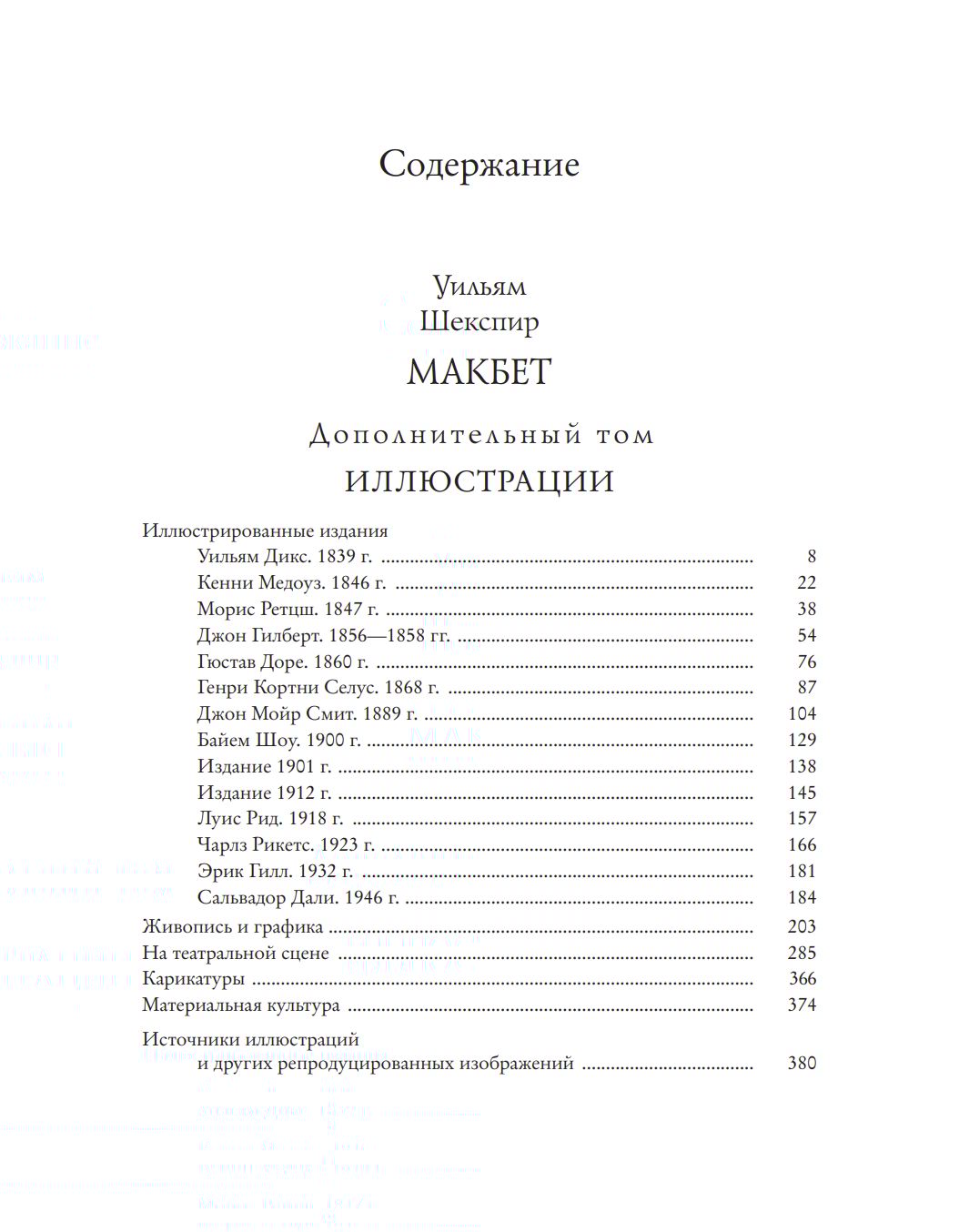 The supplementary volume unfolds a broad visual history of Macbeth. The first part features works by fourteen European and American artists, created in a wide range of styles—from Victorian graphics and Gustave Doré's engravings to the phantasmagorias of Salvador Dalí and the realistic works of Louis Reed. The second part shows how the images of Shakespeare's heroes have changed over three centuries in painting, sculpture, engraving, and lithography. Macbeth is portrayed at times as a mad tyrant, at others as a tragic and pensive character; Lady Macbeth—at times a fragile noblewoman, at others as a stern and almost demonic figure. The third part brings together portraits and photographs of outstanding actors from the world theater, as well as set designs, prop sketches, and historical costumes. The appendix includes political cartoons and advertising images that demonstrate how the images of Macbeth entered popular culture and became part of the European visual language.