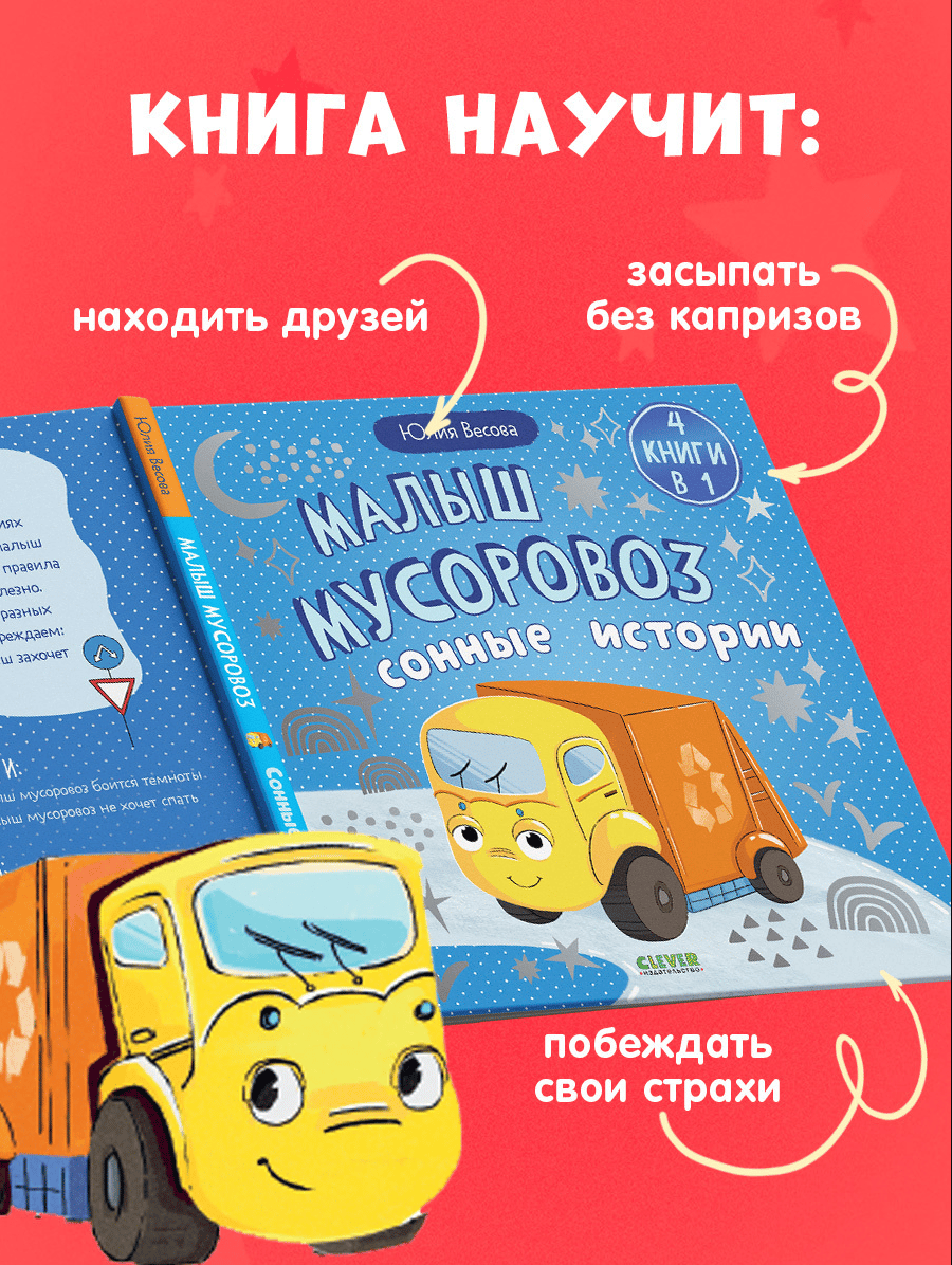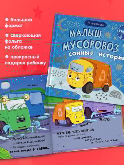 This beautiful, large gift collection, "Little Garbage Truck: Sleepy Stories," features four fairy tales for little ones about every child's favorite character—a little garbage truck. You'll learn how the little garbage truck found friends, conquered his fears, learned city safety rules, and discovered why sleep is good for you.
