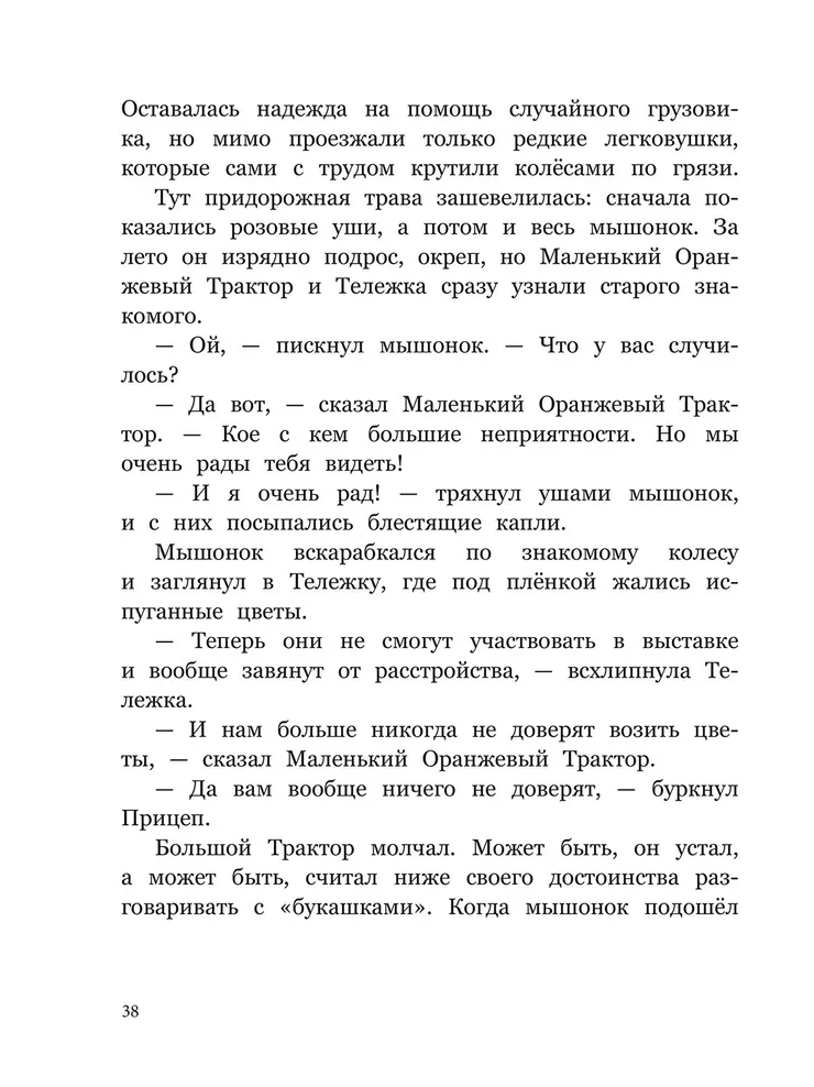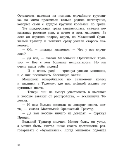 Little Orange Tractor and Trolley are great friends. They work together in the greenhouse and are the best at transporting flowers to the park, market and exhibition. But one day Tractor and Trolley have very different passengers - a whole animal company. How did a fun adventure turn into a traffic accident? Is it worth helping someone who hurt you, but then got into trouble? Our friends know that there is no bad weather for good deeds. This cheerful and instructive story by Julia Simbirskaya with bright and mischievous illustrations by Alexander Golubev will tell you that everyone is important, both big and small.