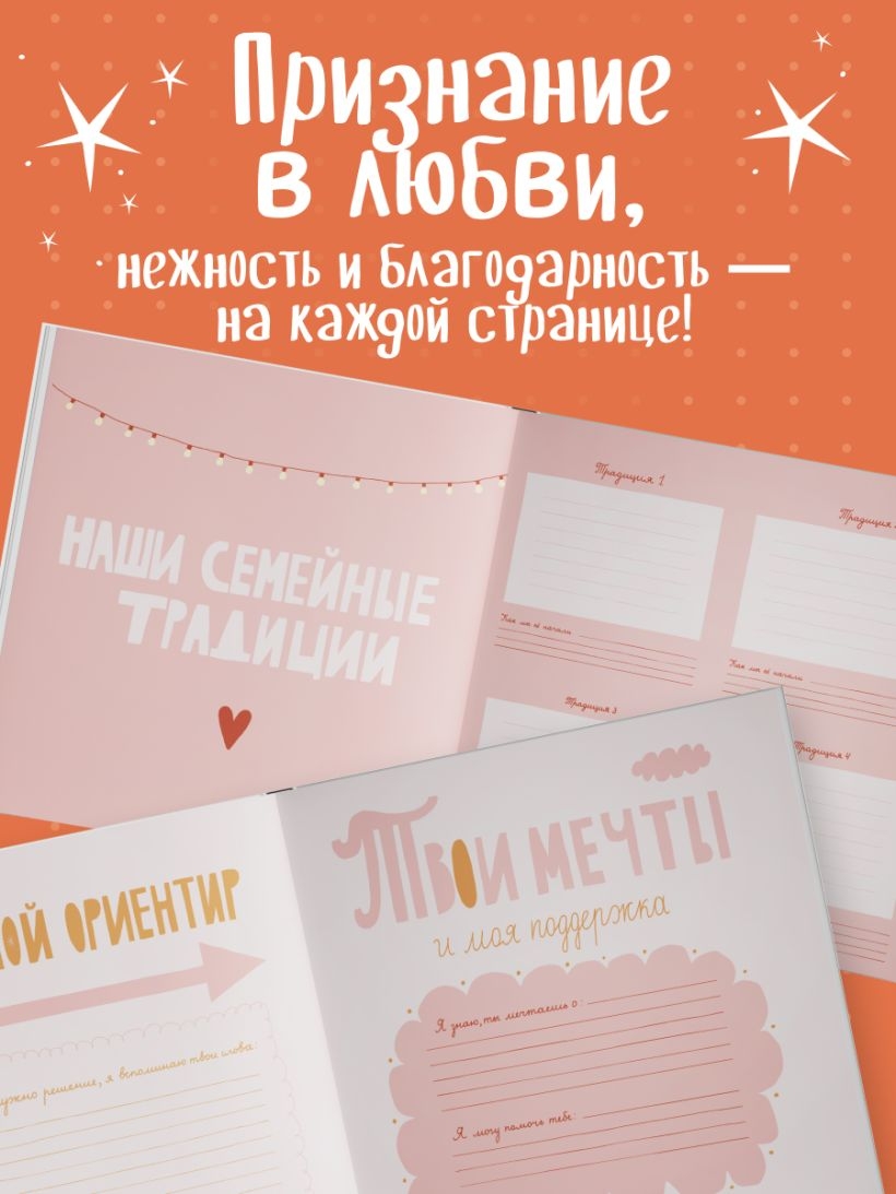 This book will help you say "I love you" and "thank you" to your mom without fuss, but with great sincerity. It will become a family heirloom you'll want to reread for years to come, and filling it out will become a warm moment you'll share even from a distance. It's perfect for any age and any occasion: birthdays, Mother's Day, March 8th, New Year's, anniversaries. It's a memorable gift that can be given from one child, the whole family, or even across multiple generations.