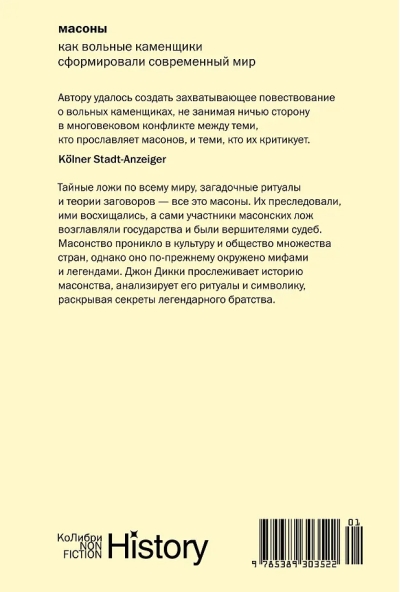 Established in the 18th century, the fraternity has united politicians, military personnel, athletes, actors, and writers from several continents throughout history. Today, there are 400,000 Freemasons in Great Britain, over a million in the United States, and approximately six million worldwide. Masons were considered oppositionists, saboteurs, and spies, and to this day, the movement is the subject of numerous conspiracy theories. How did the mysterious lodge meetings take place? What is the meaning of Masonic symbolism? What is the role of women in Masonic doctrine? In the 21st century, Freemasonry has several million members worldwide and continues to exert influence. British historian John Dickie lifts the veil of secrecy surrounding the Masonic fraternity.