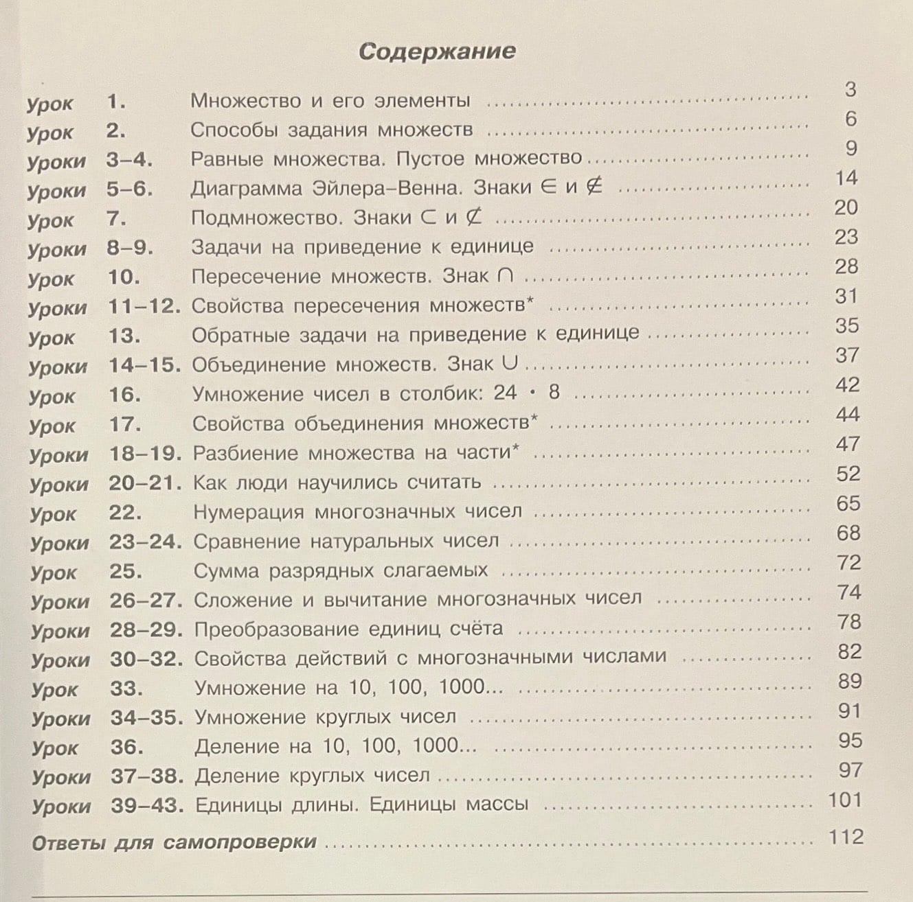 The textbook is aimed at developing students' thinking and creative abilities, forming a system of solid mathematical knowledge, general learning skills, developing personal qualities, cognitive interest and valuable attitude to education. It is a part of the integral educational and methodical complex on mathematics "Learning to Learn" for preschoolers, primary and basic school students (from 3 to 15 years old). It complies with the federal state educational standard for primary general education. Realizes the didactic system of the activity method of L. G. Peterson. It is methodologically supported by developmental aids, workbooks, collections of independent and control tests, programs, standards, methodological recommendations. It can be used in all types of schools.