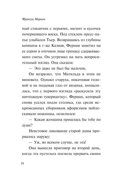 Felicite Kaznav is the epitome of overprotection; she treats her fifty-year-old son as a weak and foolish child. However, against his mother's will, he marries a young neighbor, Mathilde. Felicite burns with jealousy and vows never to let her son go, so she begins a real war with her true enemy - her calculating daughter-in-law.