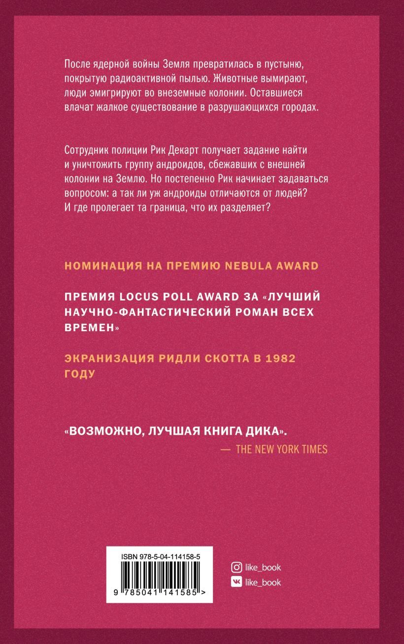 After a nuclear war, the Earth has become a desert covered with radioactive dust. Animals die out, people emigrate to extraterrestrial colonies. Those who remain live a miserable existence in crumbling cities. Police officer Rick Descartes is tasked with finding and destroying a group of androids who have escaped from the outer colony to Earth. But gradually Rick begins to wonder: are androids so different from humans? And where is the line that separates them? The novel was nominated for a Nebula Award and was adapted by Ridley Scott in 1982.