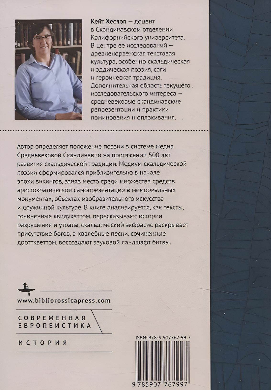 The author examines the position of poetry in the media system of Medieval Scandinavia over the course of 500 years of the skaldic tradition. The medium of skaldic poetry emerged around the beginning of the Viking Age, taking its place among the many means of aristocratic self-presentation in memorial monuments, objects of fine art, and warrior culture. The book examines how texts composed by kvidhutt recount stories of destruction and loss, skaldic ekphrasis reveal the presence of the gods, and songs of praise composed by drottkvett recreate the soundscape of battle.