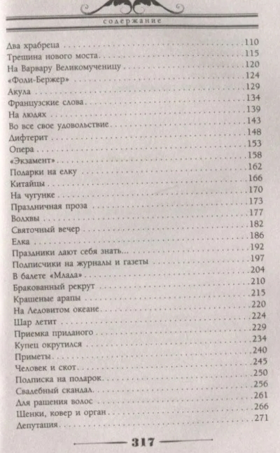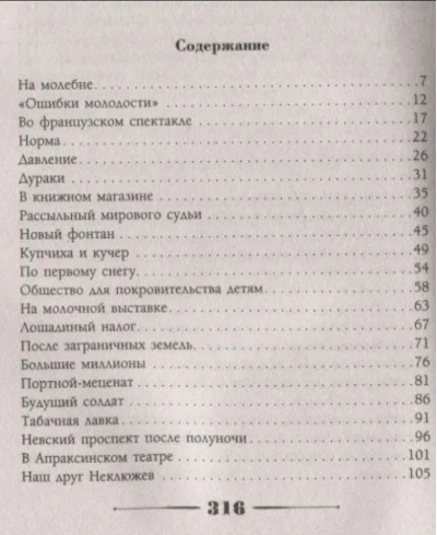 The latest collection of humorous stories by the classic writer N.A. Leykin explores themes typical of the time. Traditional holidays and their celebrations, including the practice of setting the table at guests' expense, and treating orphans at a lordly feast—of course, there can be no talk of equal joy. Ubiquitous merchants unsuccessfully attempt to understand the meaning of plays, ballets, and circus performances, the principles of library collection (by weight or volume), and the architectural features of the city's new fountains and bridges. The latter are particularly alarming: lest something go wrong, it's better to travel on ice than across a bridge. And speaking of fears: people are still wary of flying, and in the late 19th and early 20th centuries, people already mourned those ascending in a hot air balloon, while traveling by train hasn't changed at all. The streets are just as eerie at night, similarly captivating tales are told about foreign countries, and modern for-sale ads are as similar to vintage ones as what awaits buyers on the spot. It's encouraging, however, that attitudes toward artists' work are slowly but surely changing for the better.