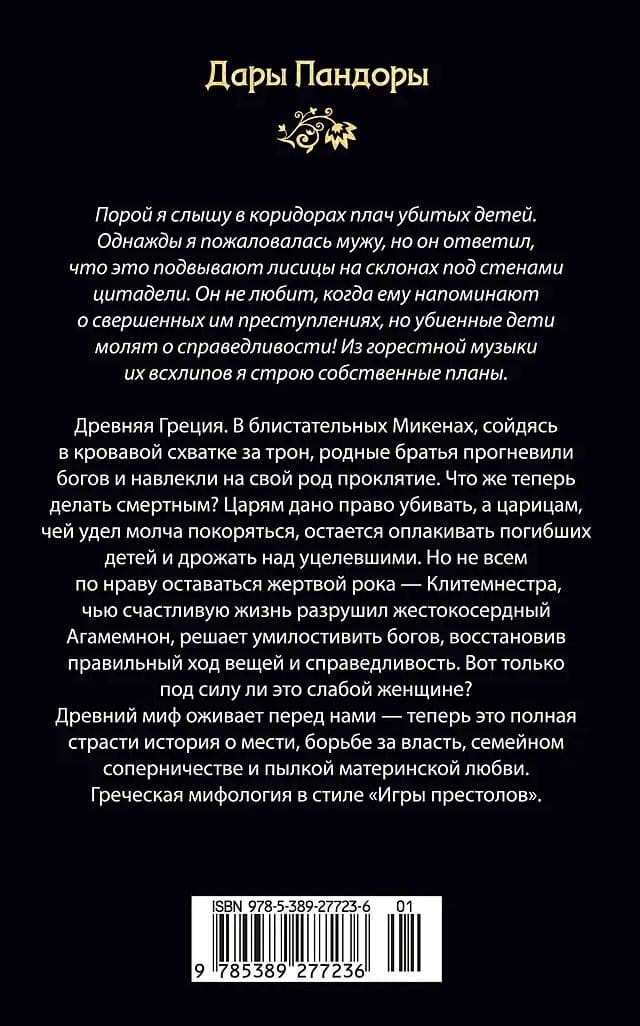 The young Queen of Mycenae, Clytemnestra, is restless: in the palace corridors, she hears the cries of murdered children. She has recently become a member of a cursed family, tainted by bloodshed and violence, and lives in a world completely dominated by men and gods. Clytemnestra was once happy with her husband, Tantalus, and their newborn son, but her world was shattered overnight by Agamemnon, who was fiercely determined to claim the throne. Storming the palace, he brutally murdered Clytemnestra's family and forcibly took her as his wife.