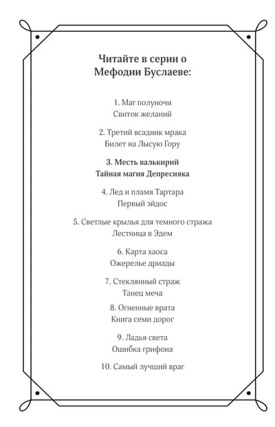 The struggle between Light and Darkness continues! The fifth and sixth books of the adventure series "Mefodii Buslaev" are included in one collection - "Revenge of the Valkyries" and "The Secret Magic of Depressiac".