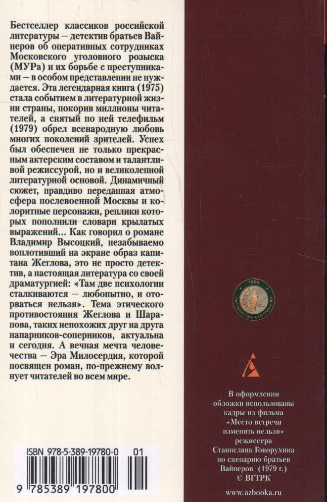 The novel by the classic Soviet detective brothers Vainer about the operative officers of the Moscow Criminal Investigation Department (MUR) and their fight against criminal elements needs no special introduction. This legendary book (1976) became an event in the life of writers, and filmed on it TV movie (1979) found nationwide love.
