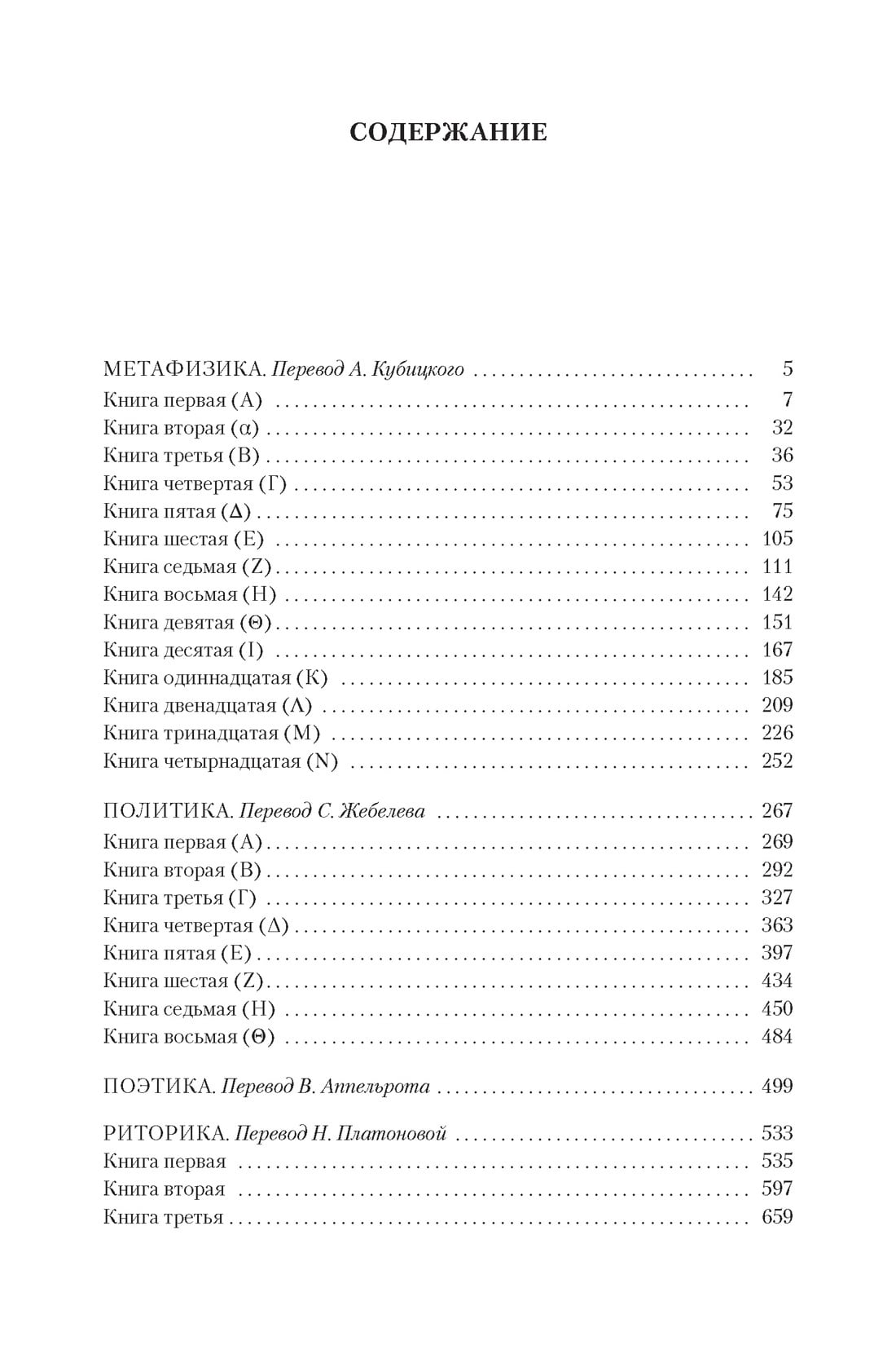 This book includes four major treatises by Aristotle, the great ancient Greek thinker who had a great influence on the development of European and world culture, a scientist-encyclopedist who stood at the origins of modern science. "Metaphysics" - a set of 14 books, united in the I century BC Andronicus of Rhodes (in whose edition it has survived to this day) - the fundamental work of the philosopher, outlining his teachings on the four first causes, or initials, of all things. In "Politics" Aristotle considers the main forms of government and the purpose of the state, defining the latter as "communication organized for the common good", criticizes a variety of political regimes, analyzes the institution of the family and the problem of education of young people, reflects on the role of religion and draws an image of an ideal society, "giving people a full opportunity to live according to their aspirations". The treatises "Poetics" and "Rhetoric" outlined for many centuries ahead the vector of development, problem contours and categorical apparatus of European literary theory.