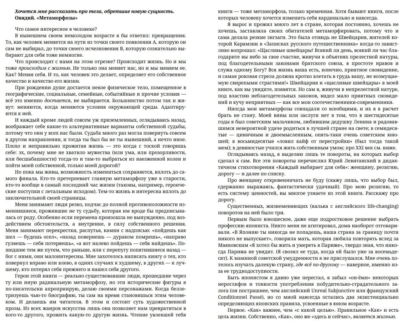 "Egoprose" is a genre invented by the author to achieve the most natural narrative. It combines essays, fiction, and documentary prose. The theme of this first "egoprose" book is the metamorphoses that occur in people, and especially writers, at defining moments in life.