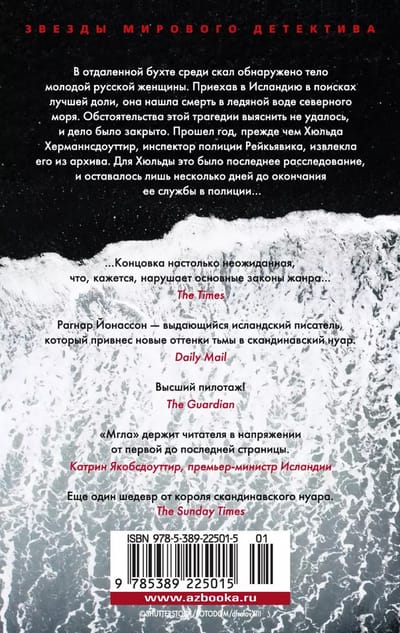 The body of a young Russian woman is found in a remote bay among the rocks. Having come to Iceland in search of a better life, she found death in the icy waters of the northern sea. The circumstances of the tragedy could not be clarified, and the case was closed. It took a year before Hulda Hermannsdóttir, a Reykjavík police inspector, retrieved it from the archives. For Hulda it was the last investigation, and there were only a few days left before the end of her service in the police... The action of the novel is set against the backdrop of mesmerizing landscapes of the deserted Icelandic highlands and majestic fjords lost among the rocks. "Darkness", the first novel in the trilogy of Hulda, instantly became an international bestseller and took the top lines of prestigious literary ratings, and Ragnar Jonasson secured the title of "king of Scandinavian noir".