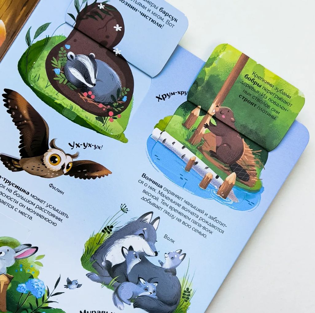 A book with windows "The World of Animals" is a guide for inquisitive kids who are ready to go on a real journey around the globe. On the pages of the book they can get acquainted with animals from all corners of the planet. Inside - 12 colorful pages and 29 windows of different shapes, opening which children will get a lot of interesting and useful information about how different animals and birds look like, where they live and what kind of life they lead. Each window has an additional fact. The book is made of dense cardboard with a laminated cover. The windows are located on each page.