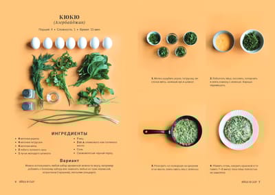 - bright illustrations of ingredients and step-by-step cooking instructions.
